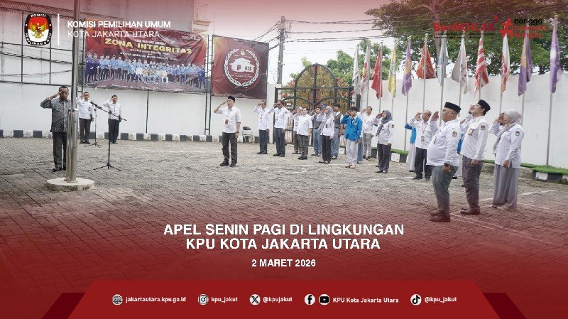#TemanPemilih, KPU Kota Jakarta Utara kembali melaksanakan rutinitas apel pagi di halaman kantor KPU Kota Jakarta Utara pada Senin (2/3/2026). Kegiatan ini diikuti oleh seluruh jajaran sekretariat KPU Kota Jakarta Utara, Mahasiswa Magang, dan Siswa/i PKL. Hadir sebagai Pembina Apel, Anggota KPU Kota Jakarta Utara, Cipto Hardoyo. Dalam amanatnya, beliau memberikan arahan strategis terkait ritme kerja organisasi di tengah pelaksanaan ibadah puasa Ramadan. "Puasa bukanlah penghalang untuk berprestasi. Saya meminta seluruh rekan-rekan untuk tetap fokus pada agenda kita. Jaga kesehatan, jaga semangat, dan pastikan setiap tugas tuntas tepat waktu," ujar Cipto Hardoyo. #KPUMelayani #KPUJakut ....