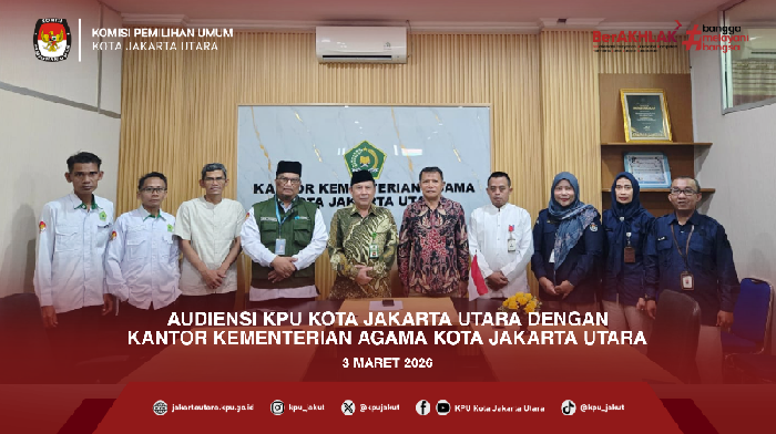 #TemanPemilih, KPU Kota Jakarta Utara terus bergerak aktif memastikan kesiapan pemilih pemula menghadapi kontestasi demokrasi mendatang. Pada Selasa (3/3/2026). Ketua dan Anggota, serta Kasubbag dan Staf KPU kota Jakarta Utara menyambangi Kantor Kementerian Agama Kota Jakarta Utara dalam rangka audiensi. Pertemuan yang berlangsung hangat di lingkungan Kantor Kemenag Jakarta Utara ini bertujuan untuk membangun sinergi dalam program Sosialisasi Pemilih Pemula, khususnya yang menyasar siswa-siswi di tingkat Madrasah Aliyah dan Pondok Pesantren se-Jakarta Utara. "Kami ingin memastikan adik-adik di Madrasah Aliyah dan Pondok Pesantren tidak hanya sekadar mencoblos, tapi menjadi pemilih yang cerdas dan kritis. Dukungan dari Kemenag sangat krusial untuk menjangkau basis pemilih di lingkungan pendidikan keagamaan," ujar Ketua KPU Kota Jakarta Utara. #KPUMelayani #KPUJakut ....
