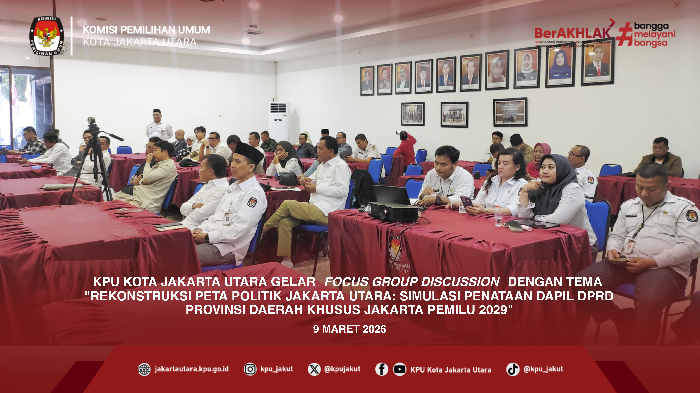 #TemanPemilih, KPU Kota Jakarta Utara mulai memetakan arah demokrasi masa depan melalui Focus Group Discussion (FGD) bertajuk "Rekonstruksi Peta Politik Jakarta Utara: Simulasi Penataan Dapil DPRD Daerah Khusus Jakarta Pemilu Tahun 2029". Acara yang berlangsung pada Senin, 9 Maret 2026, pukul 15.00 WIB ini menjadi langkah awal krusial dalam menyongsong kontestasi politik mendatang. Acara dibuka dengan sambutan dari Ketua KPU Provinsi DKI Jakarta, Wahyu Dinata. Dalam penyampaiannya, Wahyu menggarisbawahi pentingnya kesinambungan kerja penyelenggara pemilu. Ia memaparkan berbagai agenda strategis yang dilakukan KPU setelah tahapan pemilu sebelumnya berakhir, termasuk evaluasi dan penguatan basis data untuk pemilu berikutnya. Senada dengan hal tersebut, Ketua KPU Kota Jakarta Utara, Abdul Bahder Maloko, menyatakan bahwa FGD ini merupakan wadah untuk menjaring aspirasi dari berbagai pihak. "Kami berharap melalui forum ini muncul gagasan-gagasan segar dan masukan konstruktif yang dapat menjadi bahan pertimbangan dalam menyusun skema pembentukan daerah pemilihan (dapil) ke depannya, khususnya di wilayah Jakarta Utara," ujar Bahder. Diskusi inti menghadirkan dua narasumber ahli yang membedah dapil dari sisi sejarah dan legalitas: Prianda Anatta (Direktur Utama Citra Buana Sibernetika): Ia membedah latar belakang historis penataan dapil di Jakarta Utara. Dalam paparannya, Prianda menarik garis linier perkembangan peta politik mulai dari Pemilu 1997 hingga Pemilu 2004, memberikan gambaran bagaimana pergeseran demografi dan politik memengaruhi pembagian wilayah suara. Dody Wijaya (Anggota KPU Provinsi Daerah Khusus Jakarta): Dody menekankan bahwa penataan dapil saat ini memasuki "babak baru". Transformasi ini merupakan implikasi langsung dari disahkannya Undang-Undang Nomor 2 Tahun 2024 tentang Provinsi Daerah Khusus Jakarta (DKJ). Aturan ini menjadi landasan hukum utama dalam menentukan alokasi kursi dan penyesuaian wilayah dapil seiring perubahan status Jakarta. Setelah pemaparan materi, agenda dilanjutkan dengan sesi tanya jawab yang berlangsung interaktif. Para peserta yang terdiri dari berbagai elemen masyarakat, akademisi, dan perwakilan organisasi memberikan tanggapan serta pertanyaan kritis terkait simulasi pembagian kursi yang paling ideal untuk keterwakilan rakyat Jakarta Utara di kursi DPRD. #KPUMelayani #KPUJakut ....