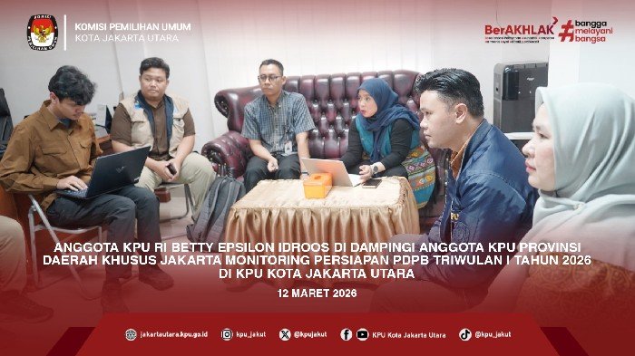 #TemanPemilih, Anggota KPU RI, Betty Epsilon Idroos, melakukan kunjungan kerja dalam rangka monitoring persiapan Pemutakhiran Data Pemilih Berkelanjutan (PDPB) Triwulan I Tahun 2026. Pada Kamis, 13 Maret 2026 ini turut didampingi oleh jajaran Anggota KPU Provinsi Daerah Khusus Jakarta. Kunjungan kerja ini bertujuan untuk memastikan seluruh tahapan PDPB berjalan secara presisi dan sesuai dengan lini masa yang telah ditetapkan. Fokus utama dalam monitoring kali ini adalah validasi data pemilih yang masuk dalam kategori Tidak Memenuhi Syarat (TMS). Dalam arahannya, Betty Epsilon Idroos menekankan pentingnya sinergi antara KPU Pusat dan daerah agar data yang dihasilkan benar-benar akurat dan akuntabel. #KPUMelayani #KPUJakut ....