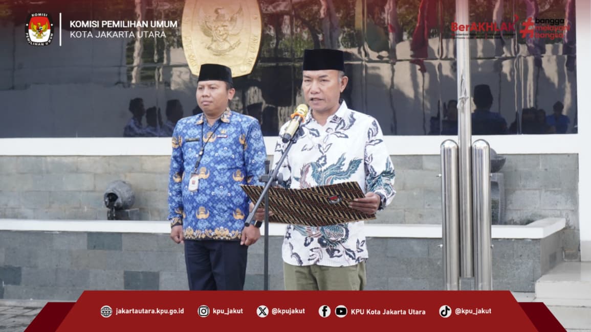 Bertindak sebagai Inspektur Upacara Abdul Bahder Maloko selaku Ketua KPU Kota Jakarta Utara membacakan teks Pidato Mentari Kebudayaan Dalam Rangka Hari Kesaktian Pancasila.
