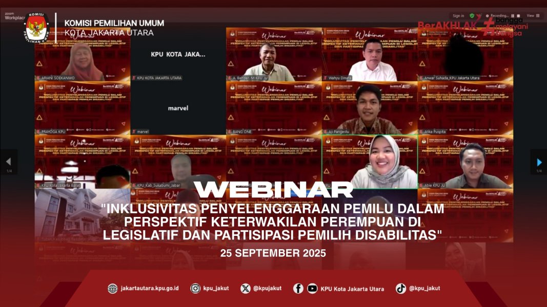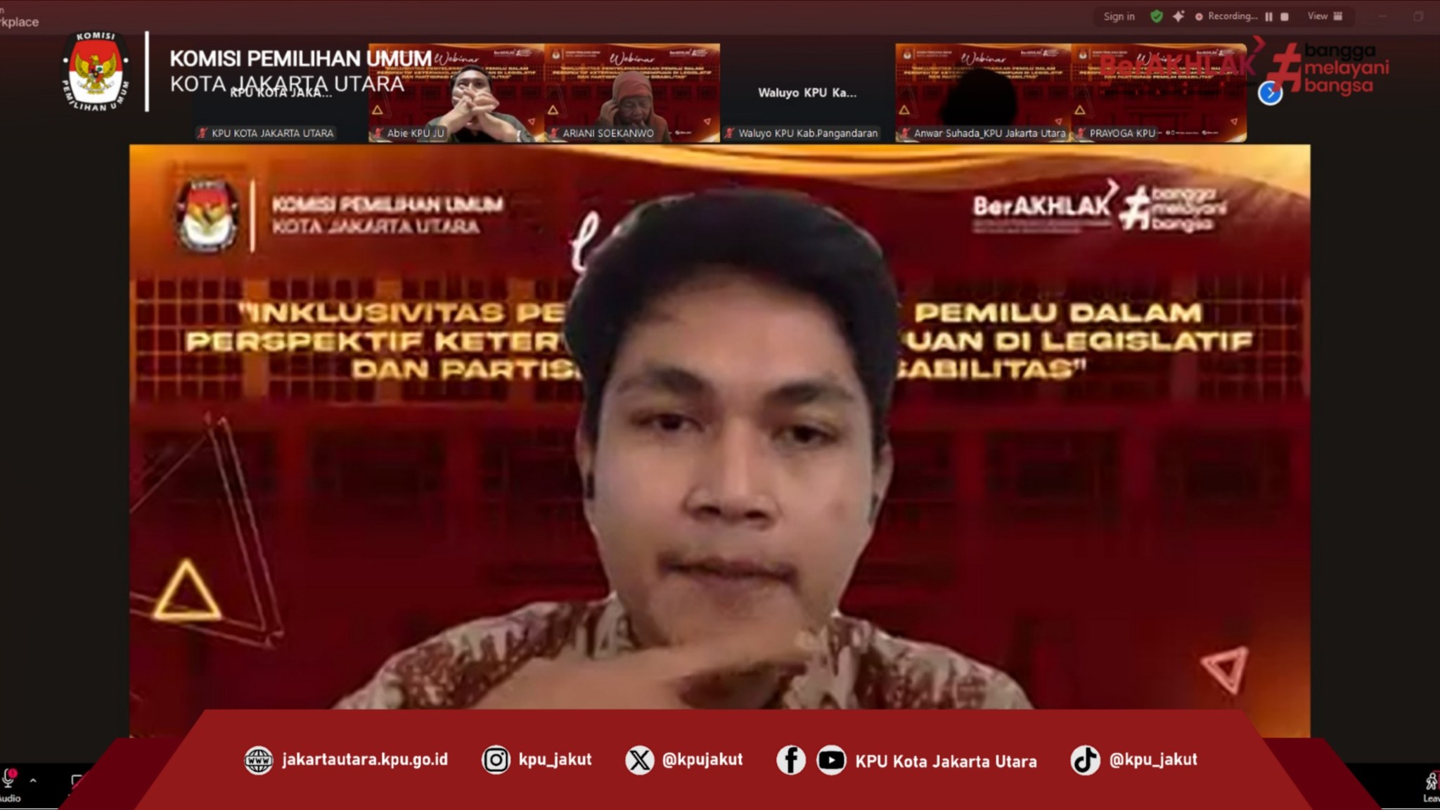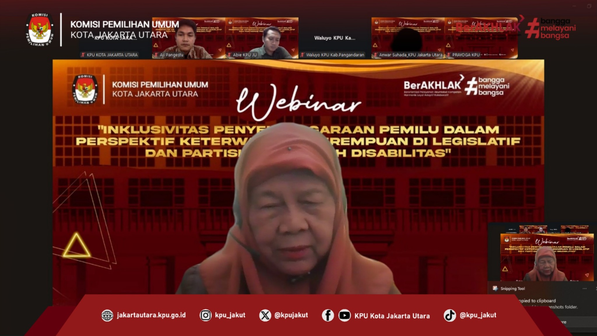 #TemanPemilih, KPU Kota Jakarta Utara menggelar Webinar dengan tema "Inklusivitas Penyelenggaraan Pemilu Dalam Perspektif Keterwakilan Perempuan di Legislatif dan Partisipasi Pemilih Disabilitas".