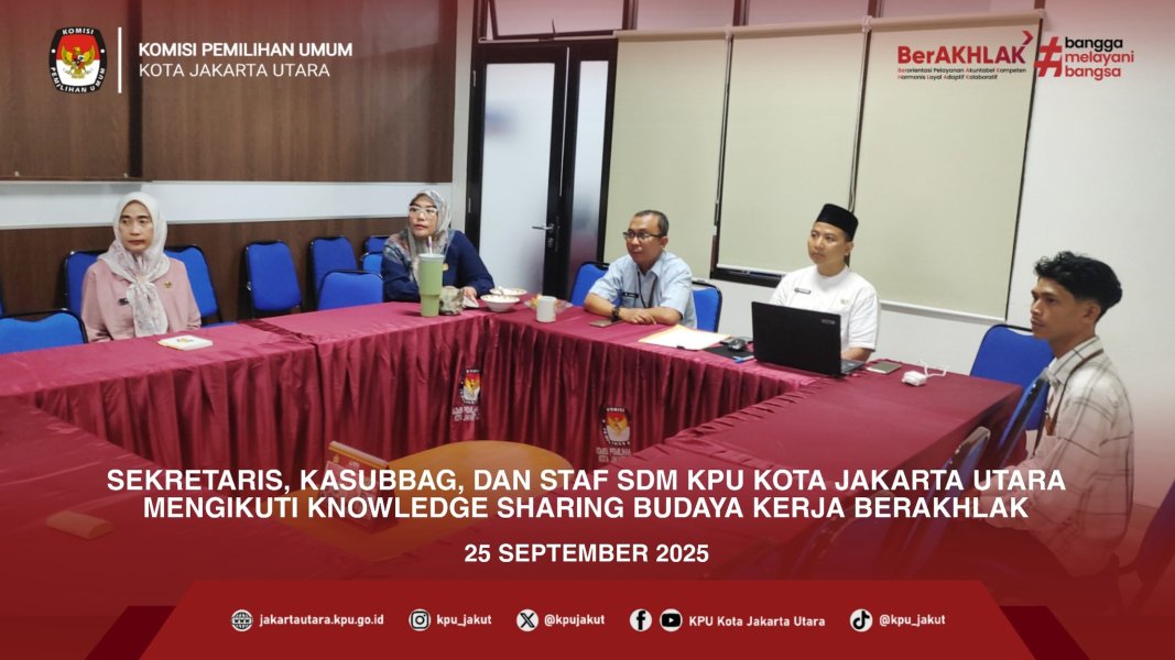 #TemanPemilih, Sekretaris, Kasubbag, dan Staf SDM KPU Kota Jakarta Utara mengikuti Knowledge Sharing Budaya Kerja Berakhlak.