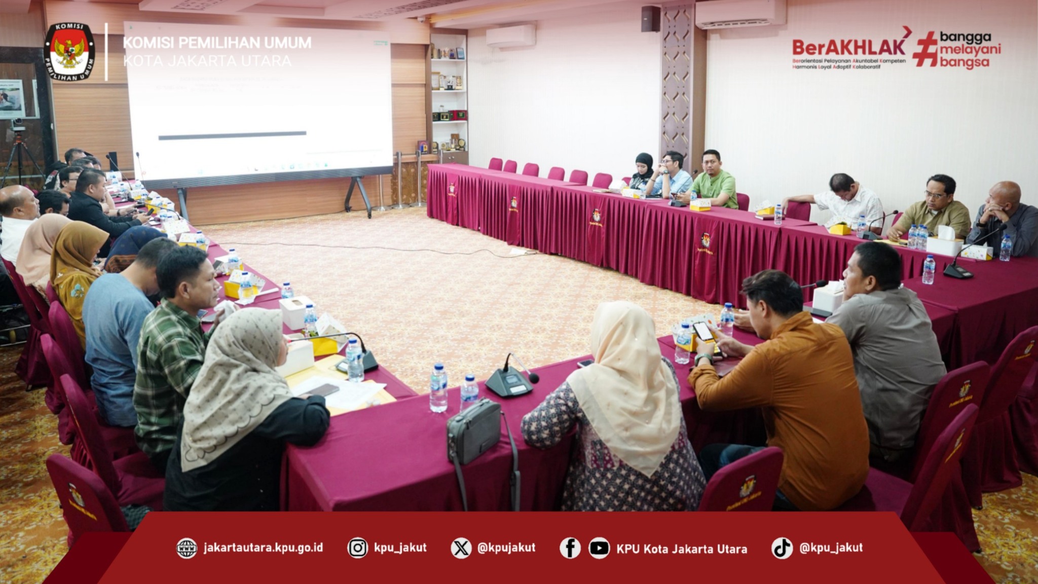 Ketua, Sekretaris dan Kasubbag Keuangan, Umum dan Logistik KPU Kota Jakarta Utara menghadiri Rapat Koordinasi Terkait Gudang Logistik di Lingkungan KPU Provinsi Daerah Khusus Jakarta.