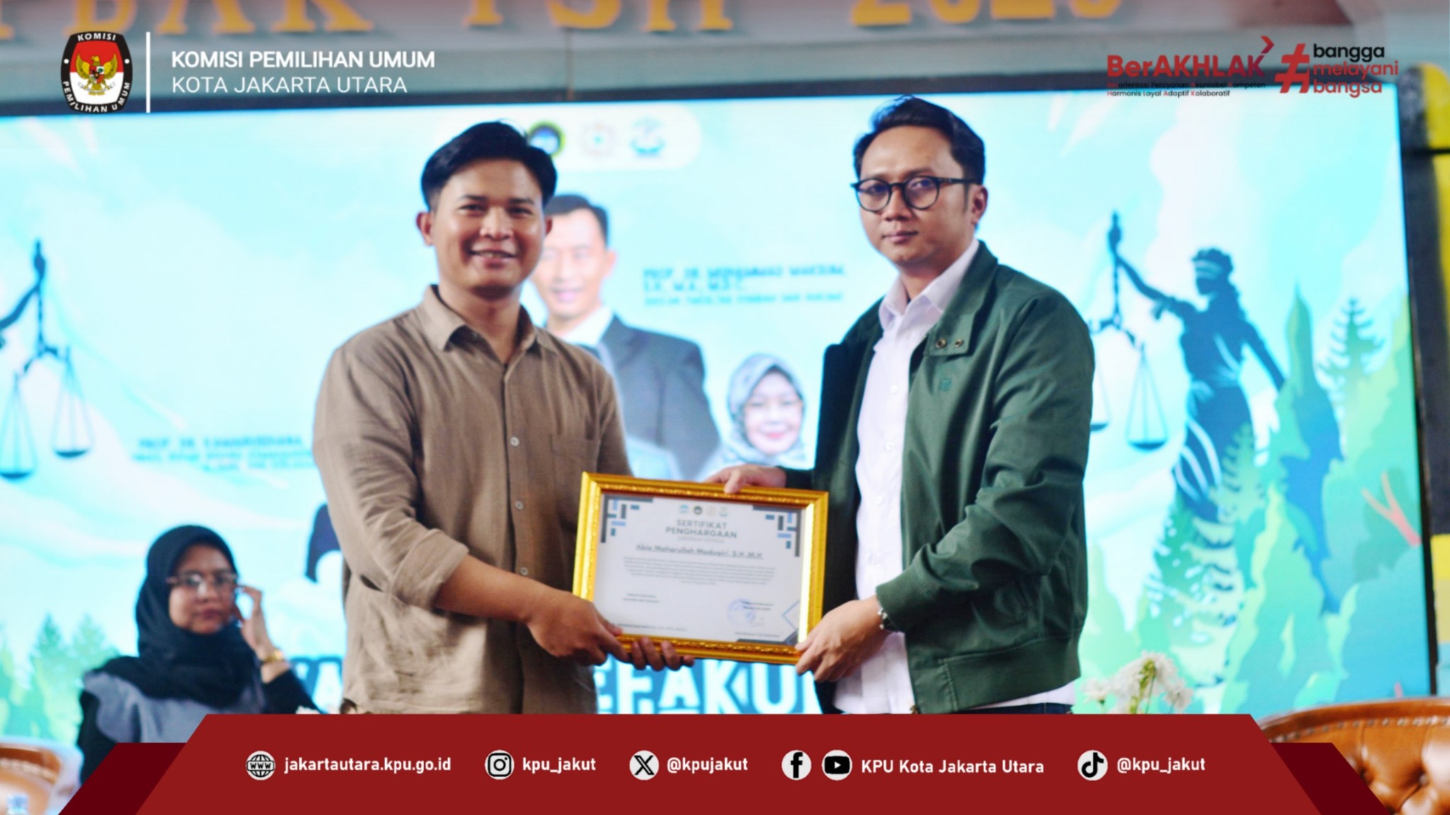 #TemanPemilih, Anggota KPU Kota Jakarta Utara Abie Maharullah Madugiri hadir sebagai Narasumber dalam acara Pengenalan Budaya Akademik dan Kemahasiswaan Fakultas Syariah dan Hukum UIN Syarief Hidayatullah Jakarta, pada hari Kamis 28 Agustus 2025.
