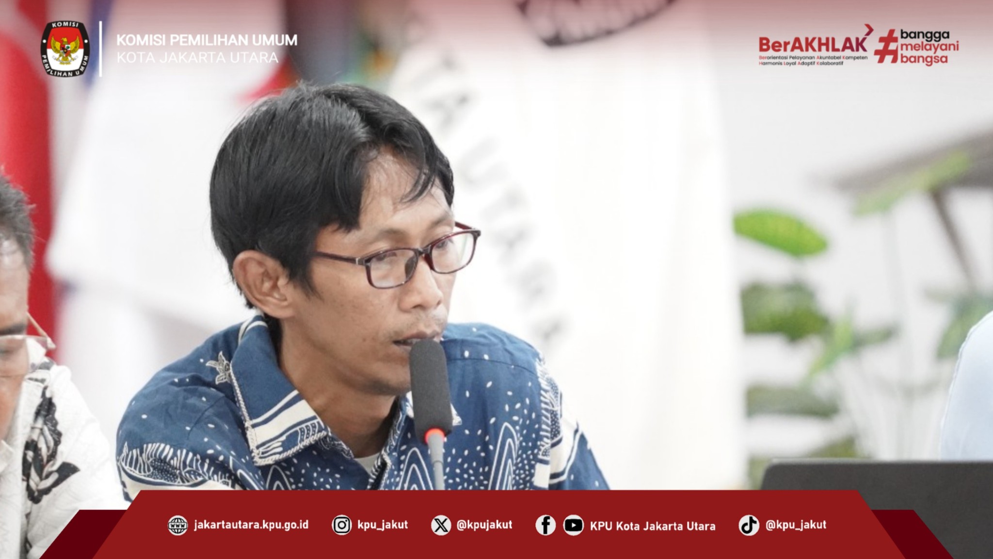 Anggota KPU Kota Jakarta Utara Maysril Somanto selaku Ketua Divisi Perencanaan, Data dan Informasi menyampaikan Daftar Pemilih Berkelanjutan di 6 Kecamatan, 31 Kelurahan, dengan jumlah Pemilih Laki-laki sebanyak 666.467, Pemilih Perempuan sebanyak 679.469, dengan jumlah total 1.345.936 Pemilih.