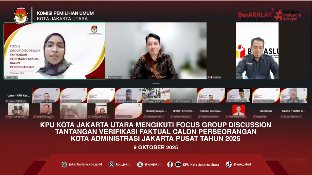#TemanPemilih, KPU Kota Jakarta Utara mengikuti Focus Group Discussion Tantangan Verifikasi Faktual Calon Perseorangan, yang diselenggarakan oleh KPU Kota Jakarta Pusat.