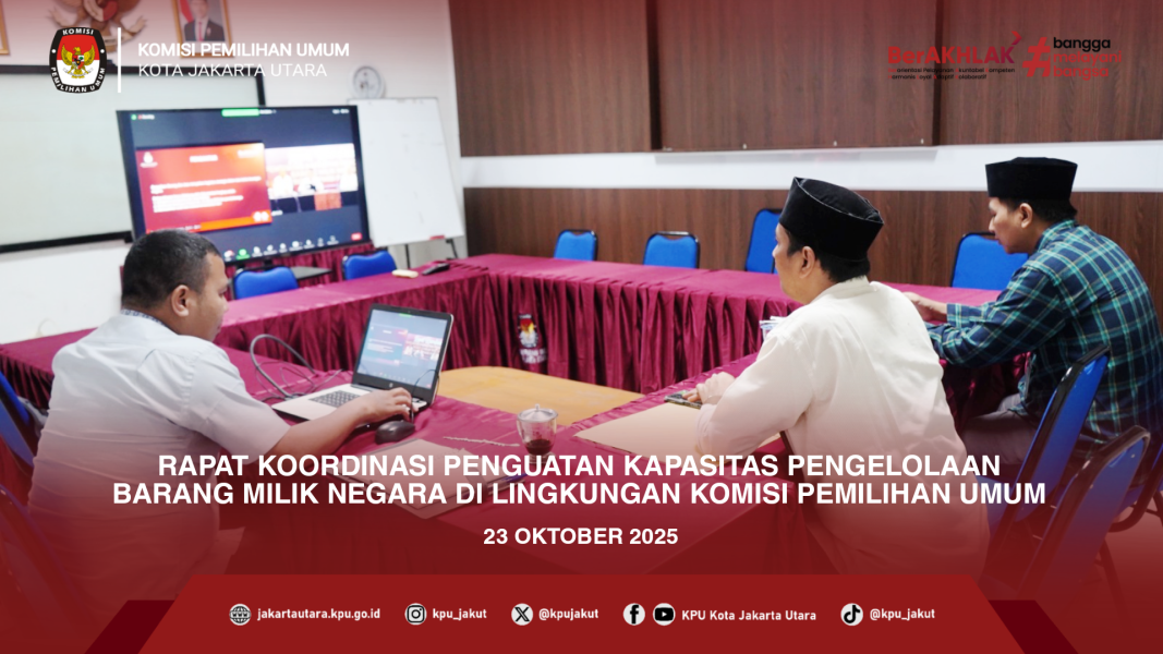 #TemanPemilih, Sekretaris, Kasubbag KUL, dan Operator BMN KPU Kota Jakarta Utara mengikuti Rapat Koordinasi Penguatan Kapasitas Pengelolaan Barang Milik Negara di Lingkungan Komisi Pemilihan Umum.