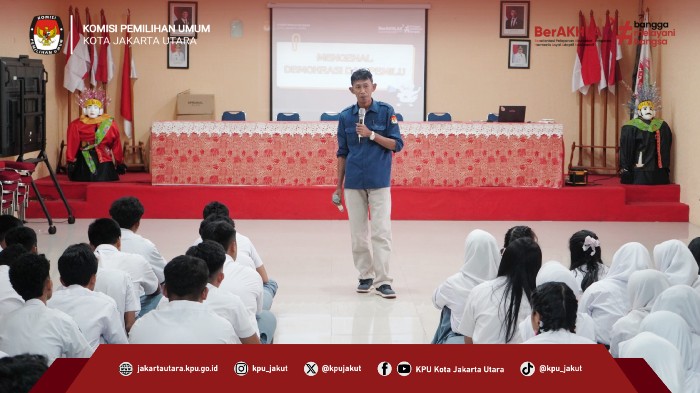 Materi disampaikan oleh Anggota KPU Kota Jakarta Utara Maysril Somanto. Dalam materinya, Maysril mengulas secara komprehensif tentang esensi demokrasi, fungsi pemilu, serta tahapan-tahapan krusial dalam Pemilihan Umum dan Pemilihan Kepala Daerah.