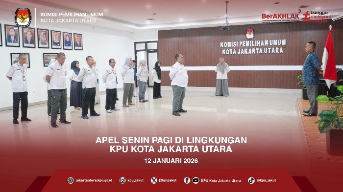 KPU Kota Jakarta Utara kembali melaksanakan rutinitas apel pagi pada Senin (12/1/2026).
