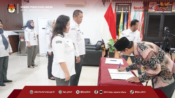 #TemanPemilih, KPU Kota Jakarta Utara melaksanakan Pelantikan dan Pengambilan Sumpah/Janji Pejabat Fungsional di lingkungan Sekretariat KPU Kota Jakarta Utara Tahun 2026, pada Kamis (22/1/2026).