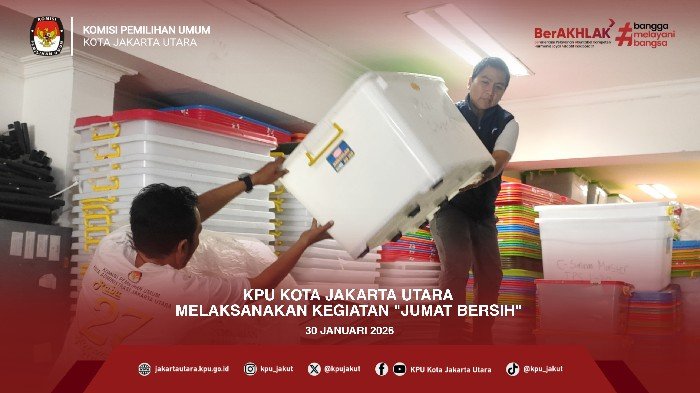 #TemanPemilih, KPU Kota Jakarta Utara melaksanakan kegiatan kerja bakti bertajuk "Jumat Bersih" pada Jumat (30/01/2026) pagi.