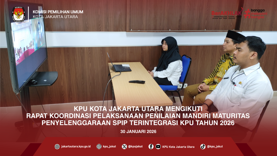 #TemanPemilih, KPU Kota Jakarta Utara mengikuti Rapat Koordinasi Pelaksanaan Penilaian Mandiri Maturitas Penyelenggaraan Sistem Pengendalian Intern Pemerintah (SPIP) Terintegrasi KPU Tahun 2026, Jumat (30/1).