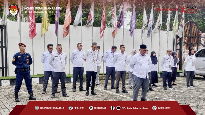 Apel yang berlangsung khidmat tersebut diikuti oleh seluruh jajaran sekretariat KPU Kota Jakarta Utara.