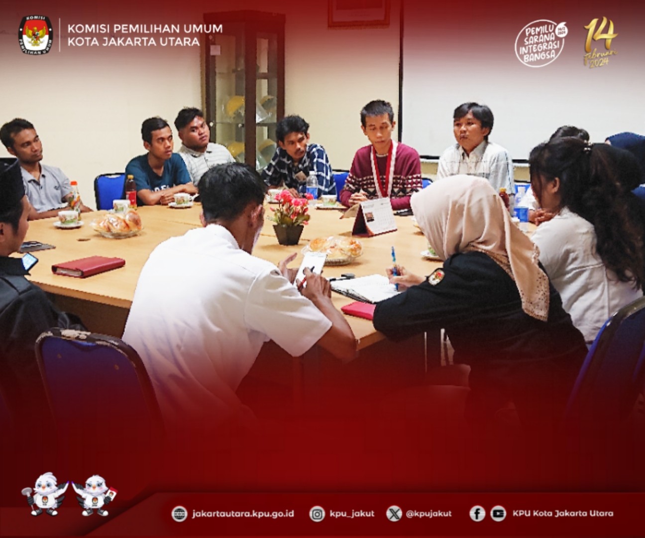 #TemanPemilih KPU Kota Jakarta Utara menerima Audiensi dari Gerakan Mahasiswa Nasional Indonesia (GMNI), bertempat di Ruang Rapat Lt. 1 KPU Kota Jakarta Utara, pada tanggal 6 September 2023 Pukul 14.00 WIB s.d selesai.
