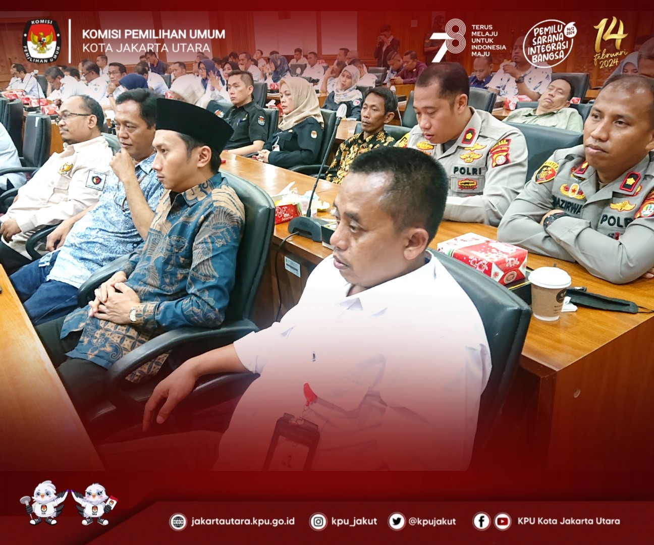 Di hadiri oleh Bapak Walikota Kota Administrasi Jakarta Utara, Kapolres Metro Jakarta Utara, Kapolres Pelabuhan Tanjung Priok, Dandim 0502 Jakarta Utara, Kepala Kejaksaan Negeri Jakarta Utara, Ketua Pengadilan Negeri Jakarta Utara, dan Pimpinan Bawaslu Kota Jakarta Utara.