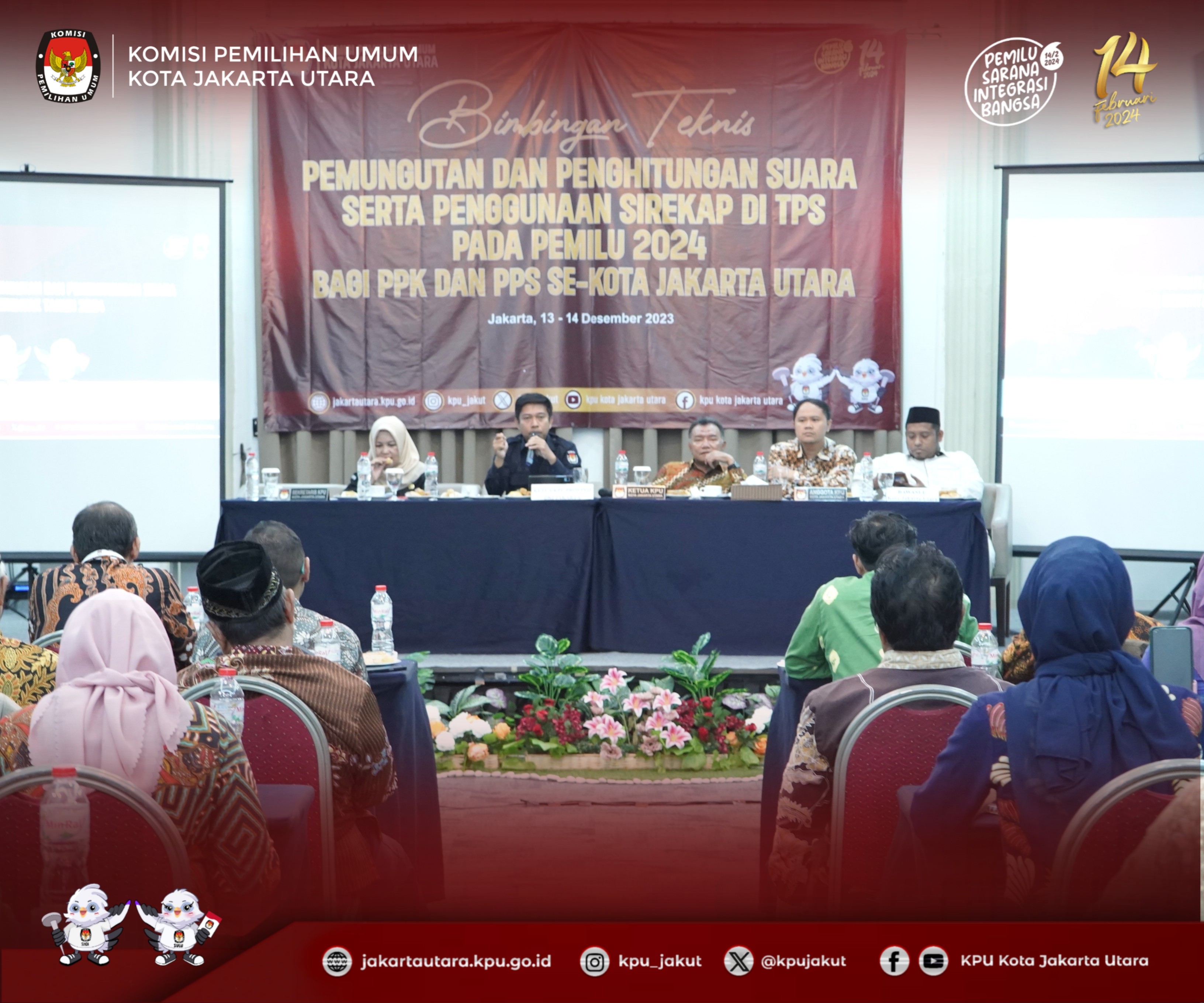 #TemanPemilih KPU Kota Jakarta Utara melakukan Bimbingan Teknis Pemungutan dan Penghitungan Suara Serta Penggunaan SIREKAP di TPS Pada Pemilu 2024 Bagi PPK dan PPS se-Kota Jakarta Utara.