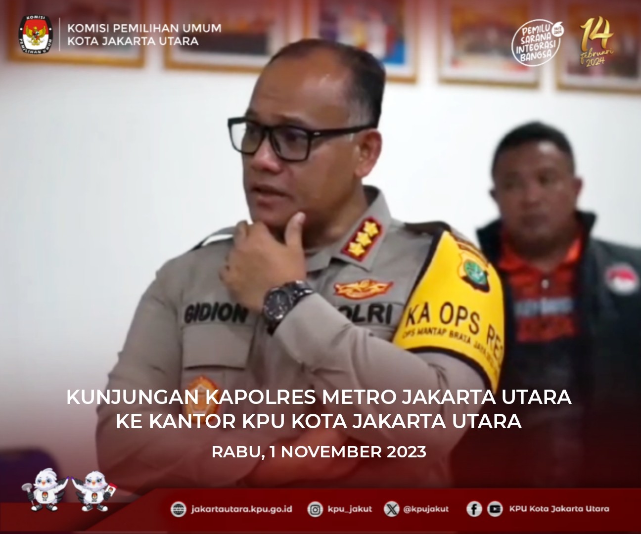 #TemanPemilih KPU Kota Jakarta Utara menerima kunjungan Kapolres Metro Jakarta Utara dalam rangka Pengecekan Persiapan Pemilu 2024, pada hari Rabu, 1 November 2023 pukul 21.00 WIB.