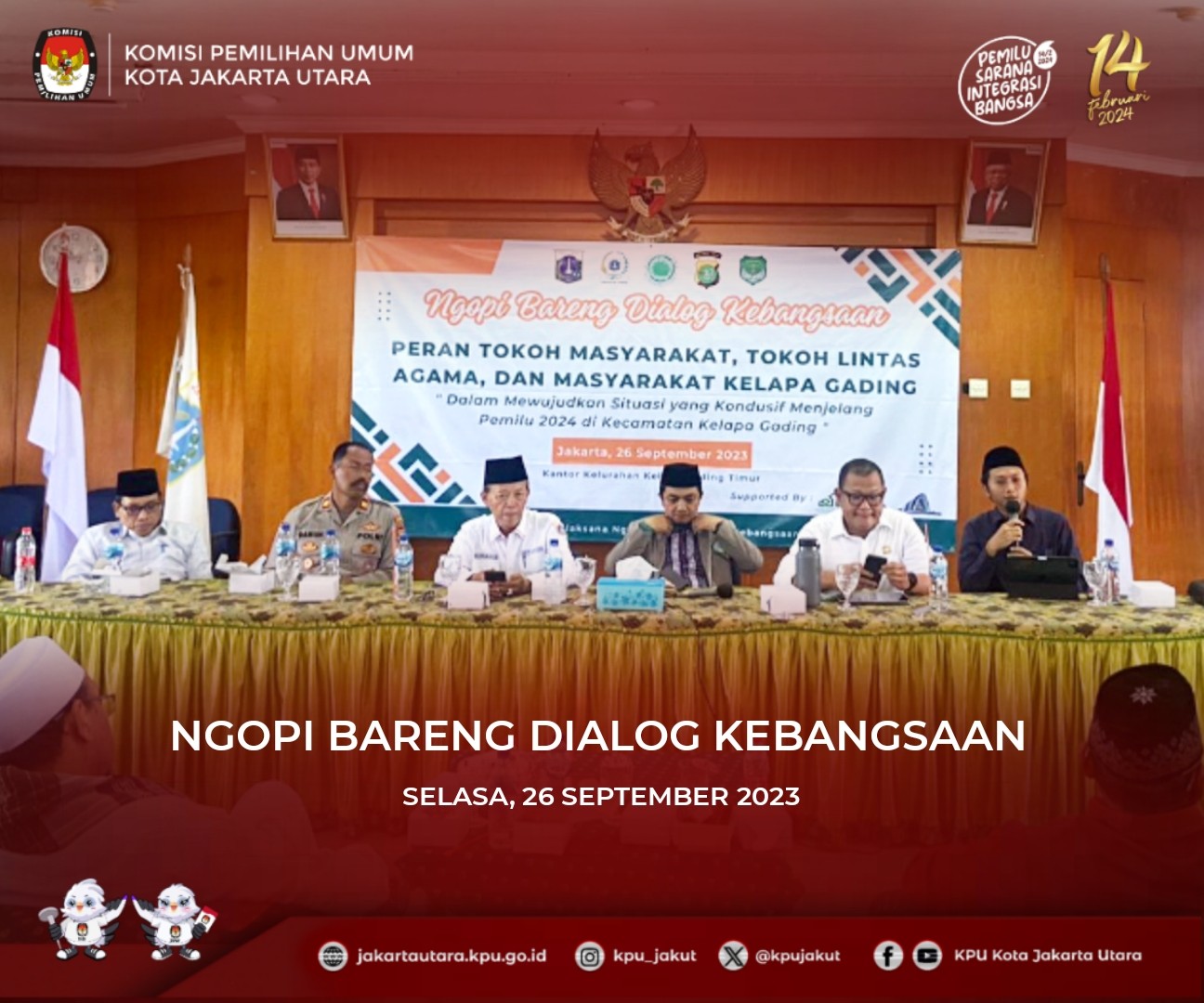 #TemanPemilih KPU Kota Jakarta Utara menghadiri Acara Ngopi Bareng Dialog Kebangsaan pada hari Selasa, 26 September 2023 pukul 08.00 WIB s.d selesai, bertempat di Kantor Kelurahan Kelapa Gading Timur.