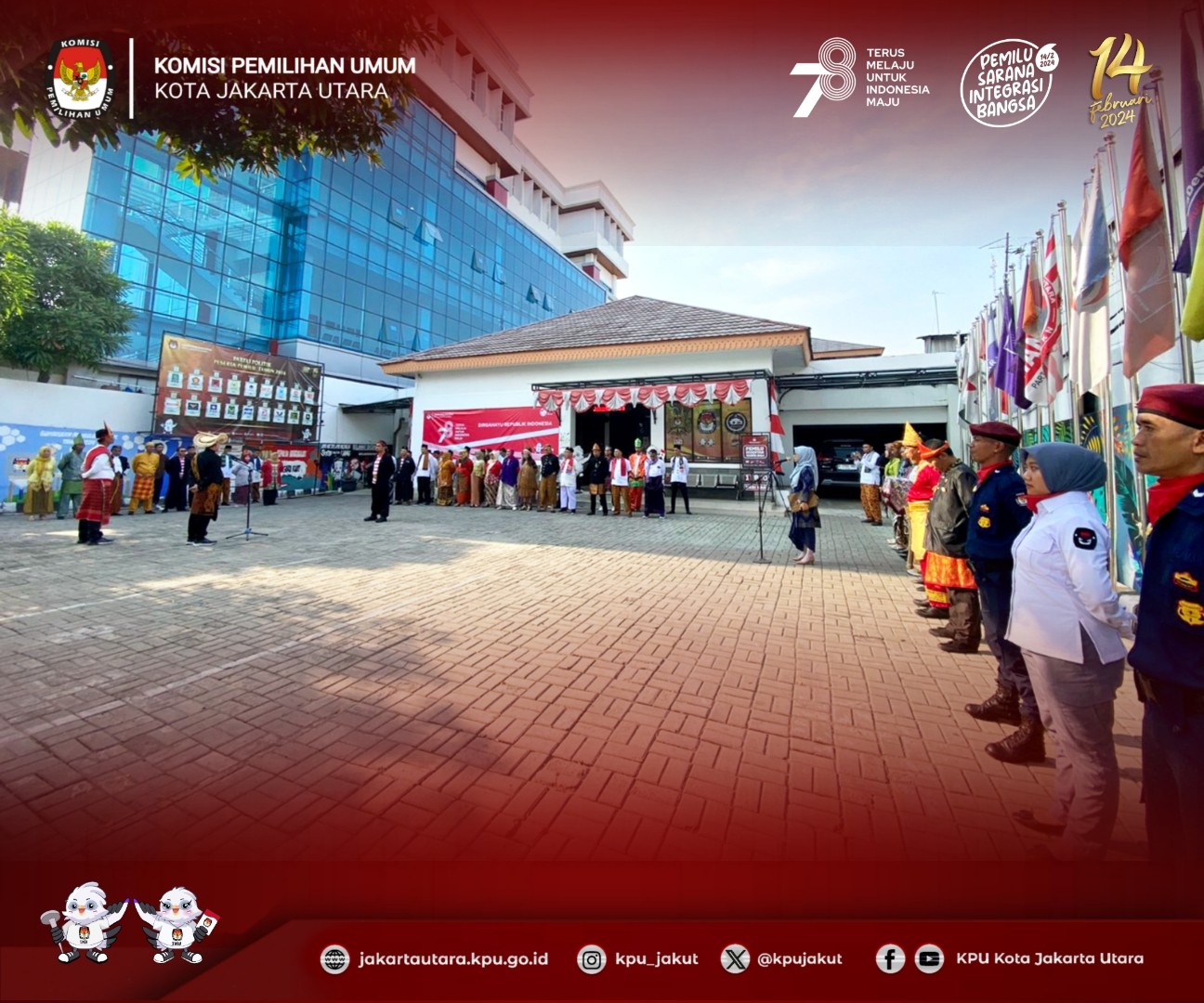 Upacara diikuti oleh Anggota, Sekretaris Kasubbag, Jajaran Staf KPU Kota Jakarta Utara beserta Ketua PPK dan Ketua PPS se-Kota Jakarta Utara dan dipimpin langsung oleh Ketua KPU Kota Jakarta Utara, Bpk. Abdul Bahder Maloko.