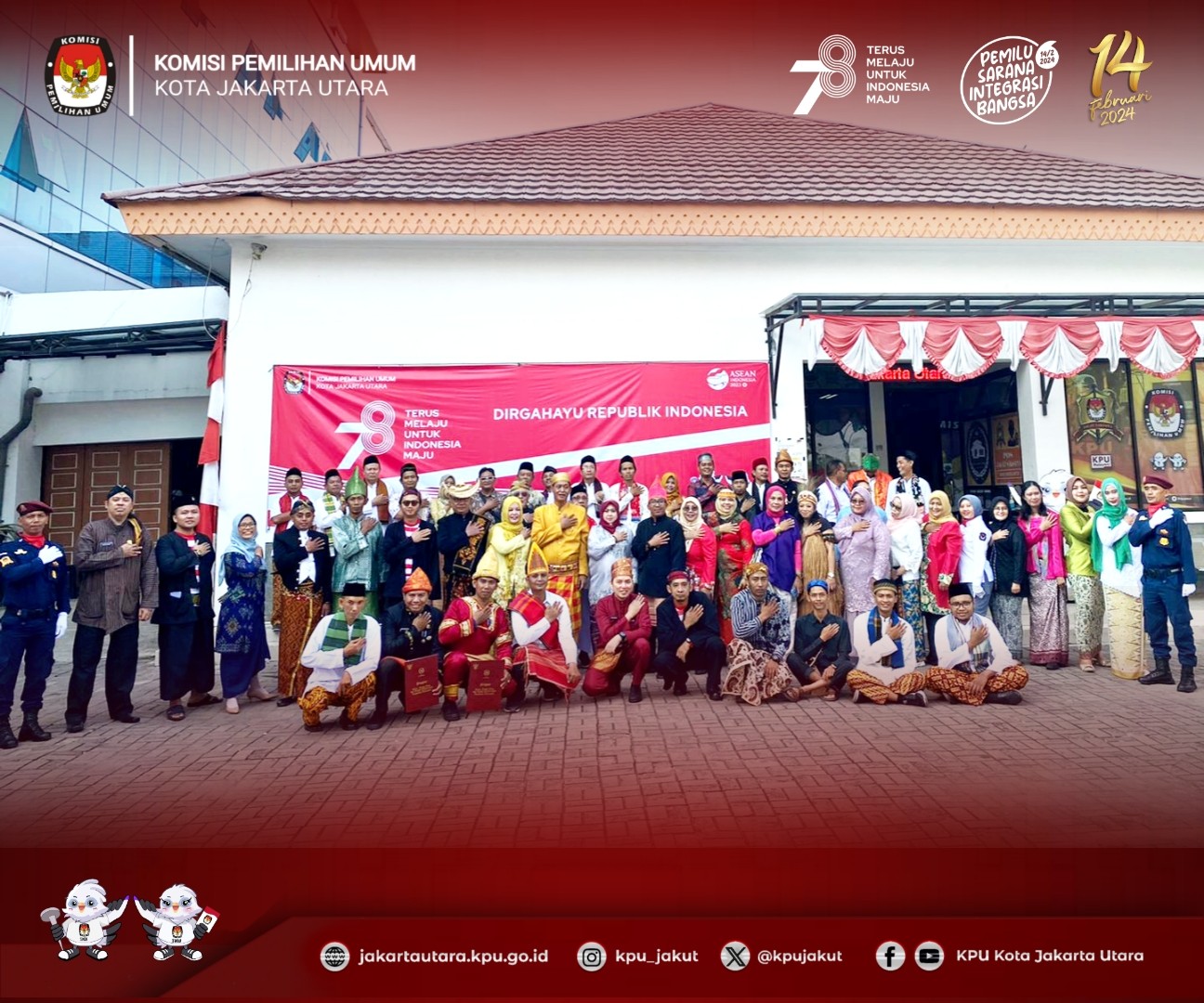 Menyambut Hari Ulang Tahun Republik Indonesia (HUT RI) Ke-78, Komisi Pemilihan Umum Kota Jakarta Utara menggelar upacara bendera di kantor KPU Kota Jakarta Utara, Kamis 17 Agustus 2023.