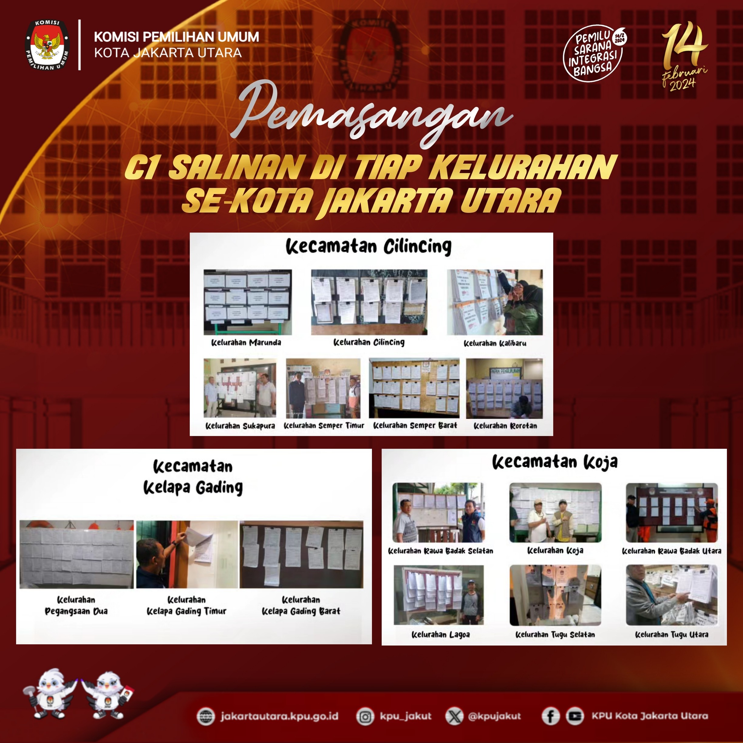 #TemanPemilih , berikut informasi publikasi pemasangan c1 Salinan, di tiap Kecamatan se-Kota Jakarta Utara.