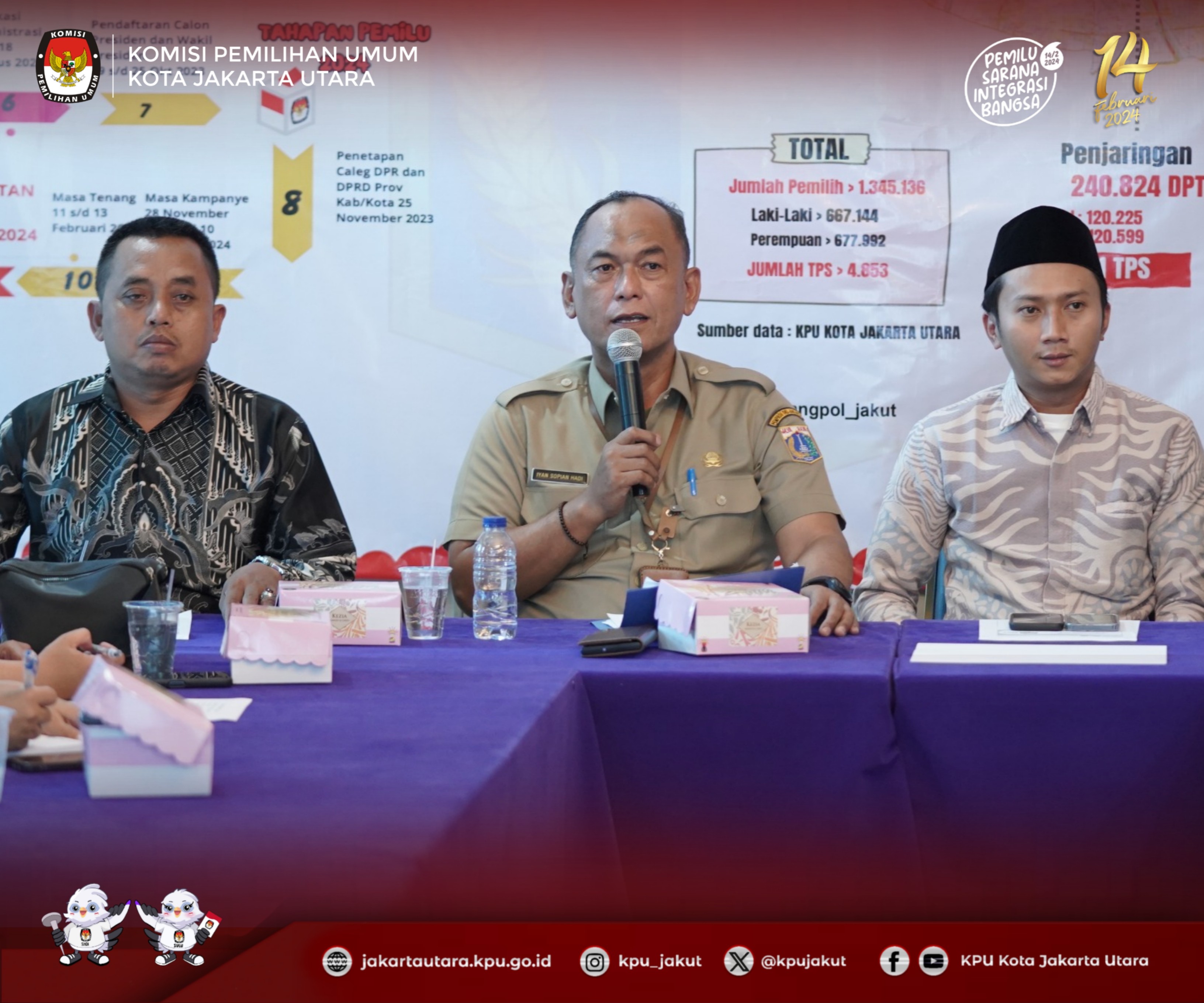 Pada hari Senin, 22 Januari 2024, yang bertempat di Posko Pemilu Serentak Tahun 2024, Kantor Walikota Kota Administrasi Jakarta Utara.