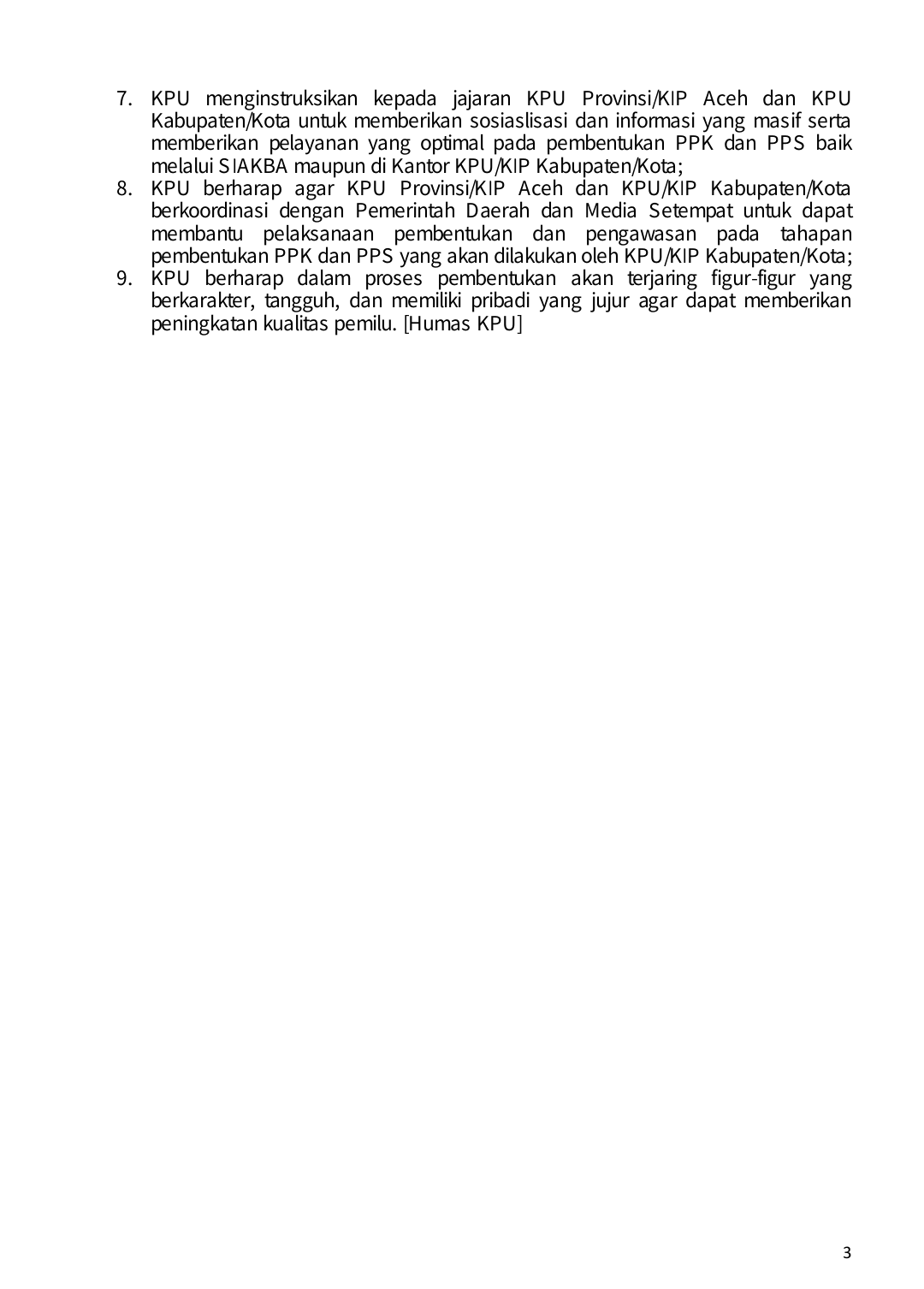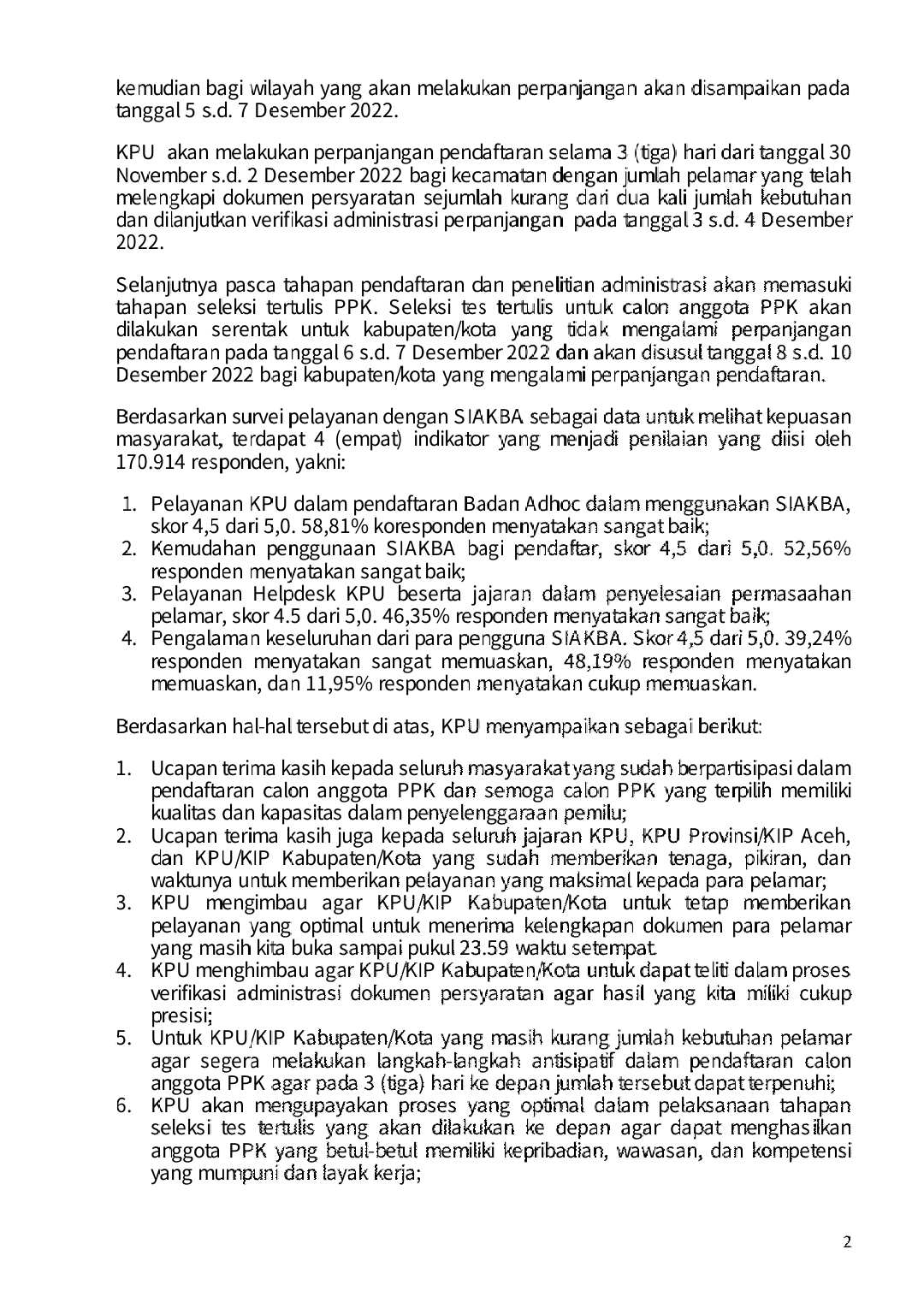 Siaran Pers KPU terkait Penutupan Pendaftaran Calon Anggota PPK untuk Pemilu Tahun 2024.
