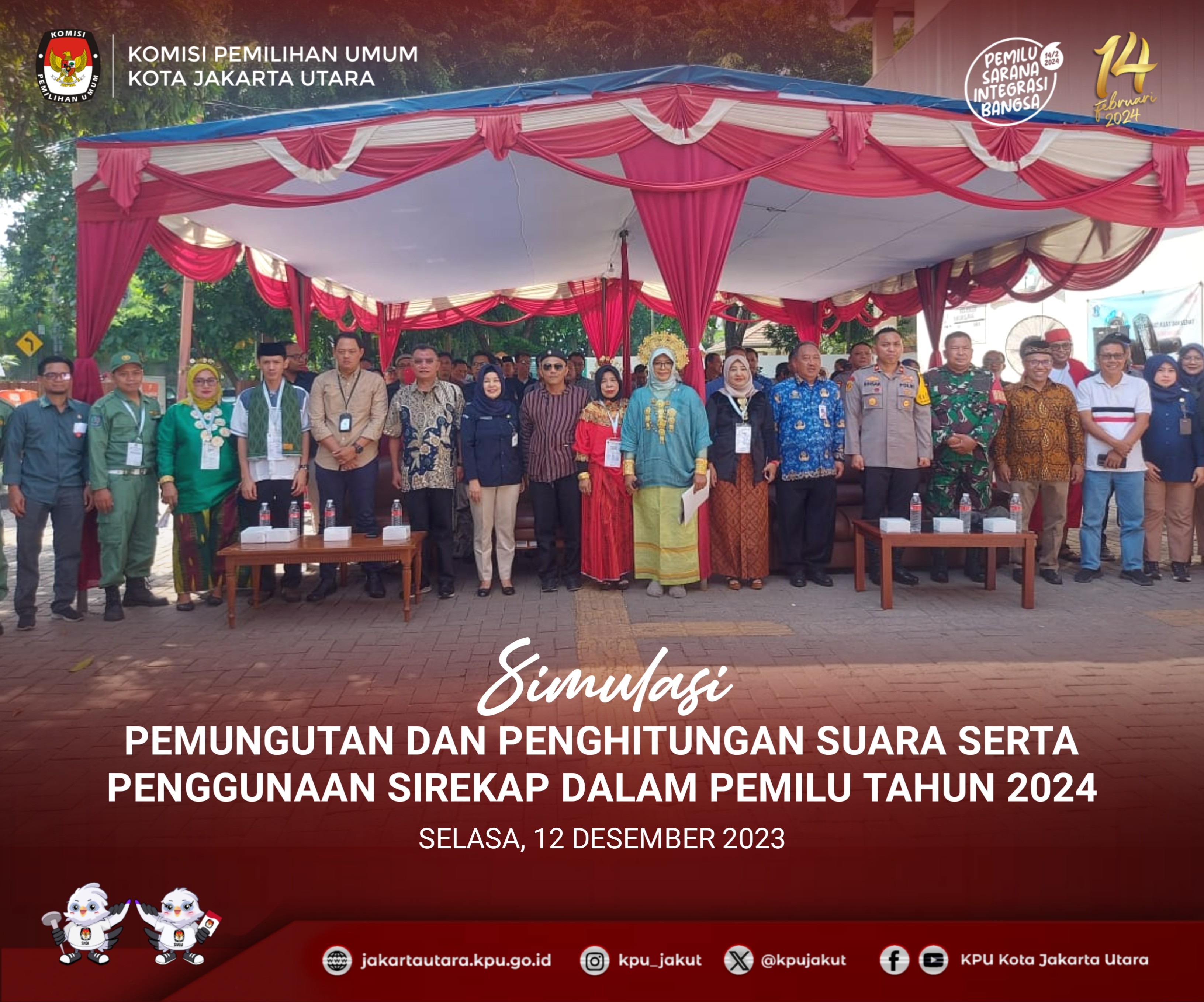 #TemanPemilih KPU Kota Jakarta Utara melakukan Simulasi Pemungutan dan Penghitungan Suara Serta Penggunaan SIREKAP Dalam Pemilu Tahun 2024, pada hari Selasa 12 Desember 2023, pukul 08.00 WIB s.d selesai, yang bertempat di GOR Kecamatan Pademangan.