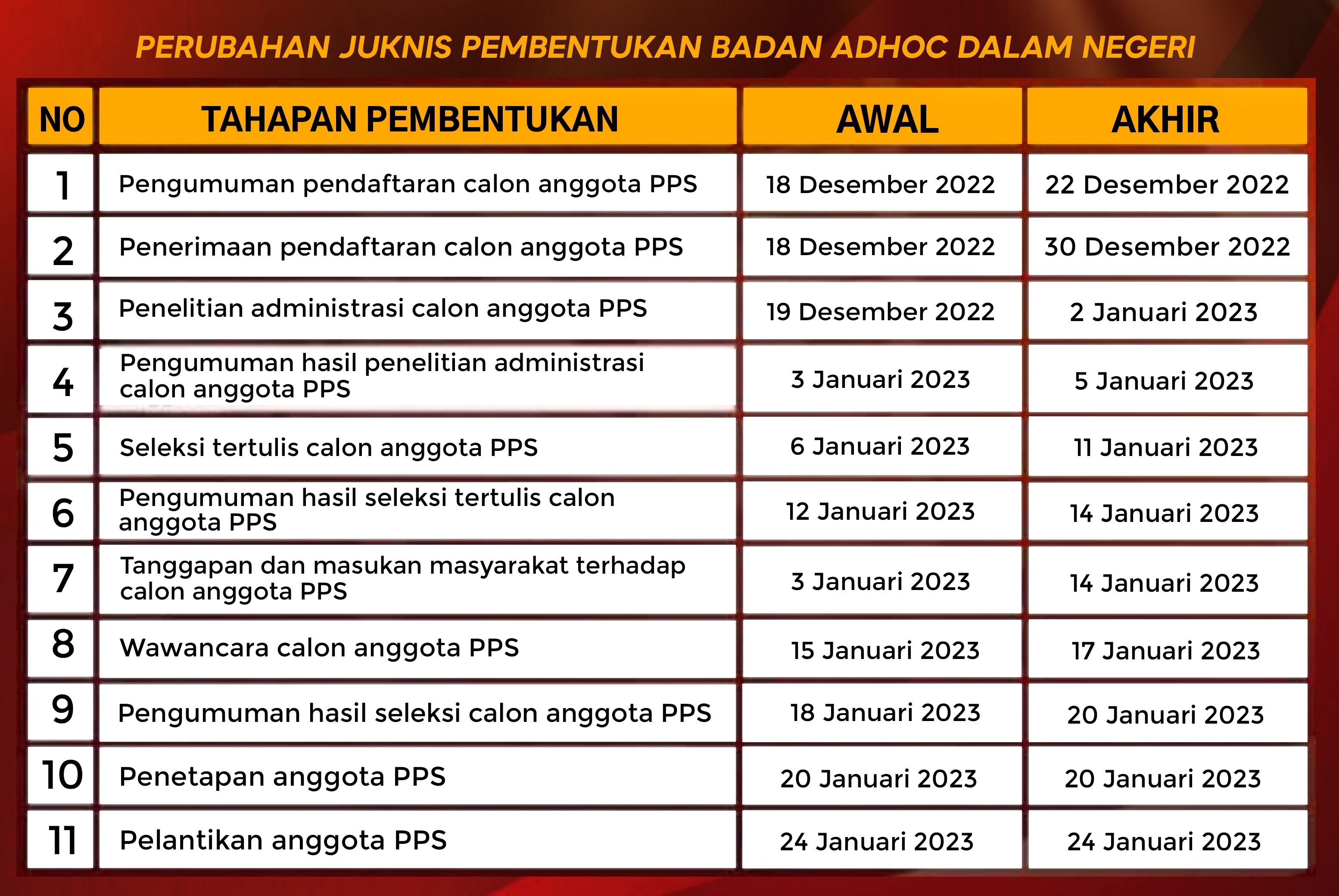 Sesuai Perubahan Juknis Pembentukan Badan Adhoc Dalam Negeri.