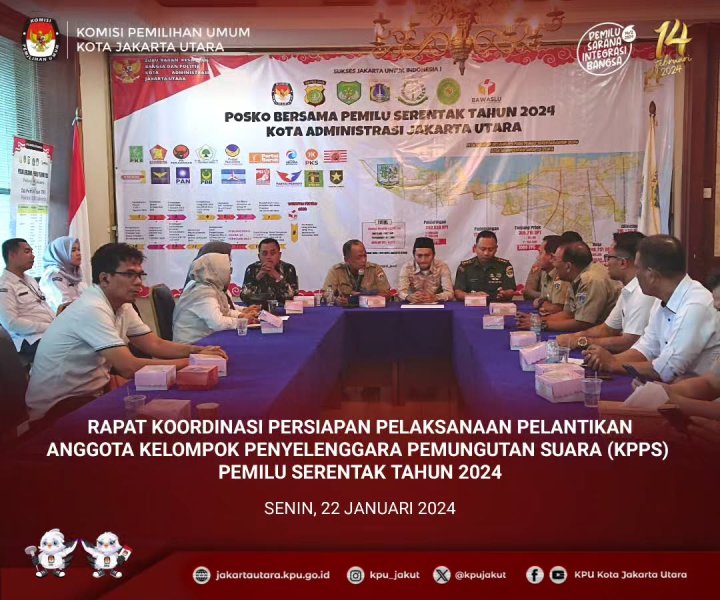 Pada hari Senin, 22 Januari 2024, yang bertempat di Posko Pemilu Serentak Tahun 2024, Kantor Walikota Kota Administrasi Jakarta Utara.