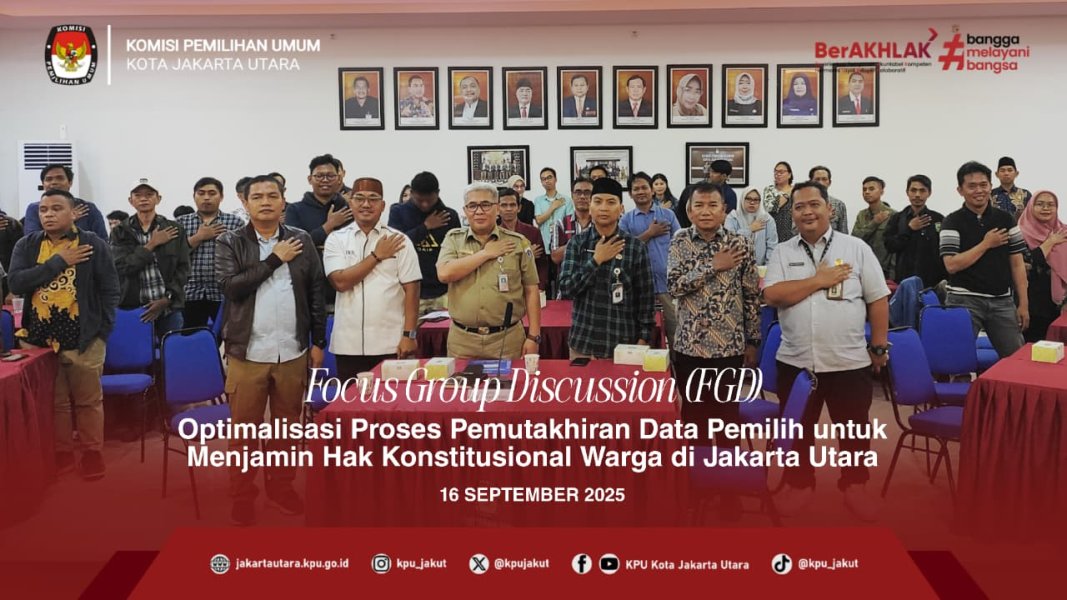 #TemanPemilih, KPU Kota Jakarta Utara melaksanakan Focus Group Discussion (FGD) dengan tema "Optimalisasi Proses Pemutakhiran Data Pemilih Untuk Menjamin Hak Konstitusional Warga di Jakarta Utara".