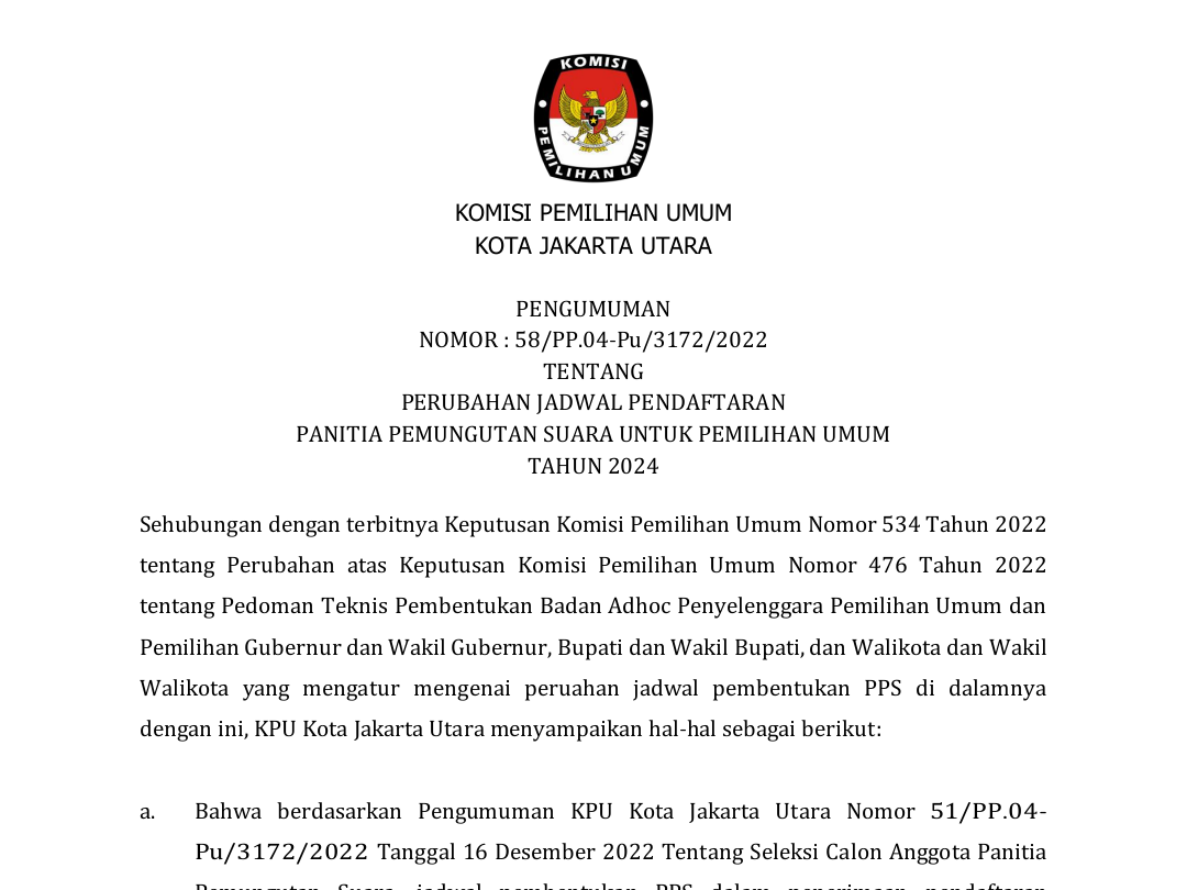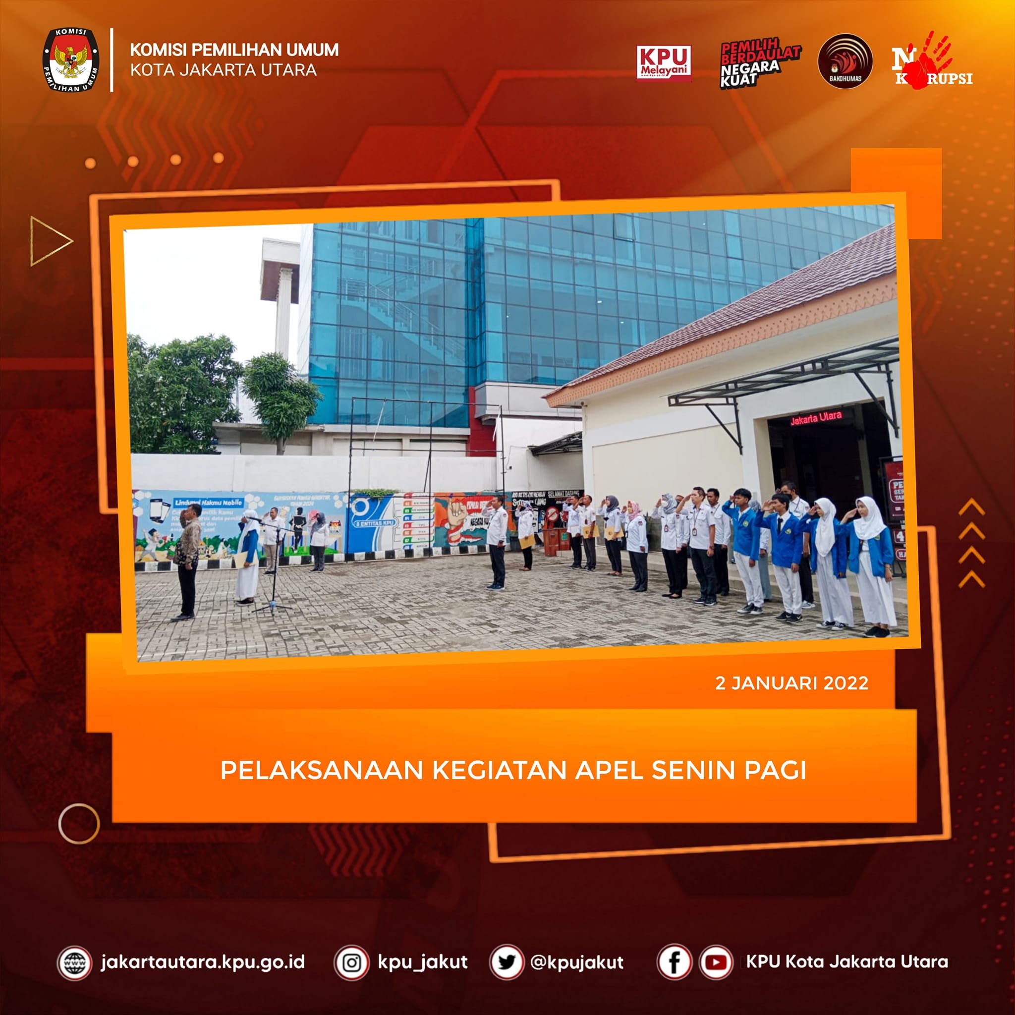 Komisi Pemilihan Umum Kota Jakarta Utara melaksanakan Kegiatan Apel Pagi di minggu pertama Tahun 2023, di halaman kantor KPU Kota Jakarta Utara.