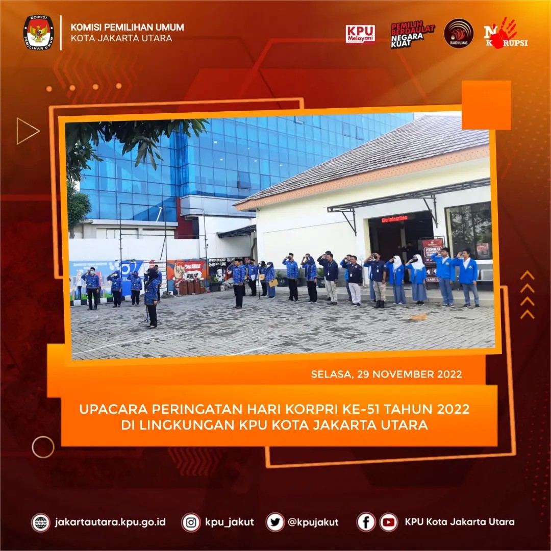 #Temanpemilih KPU Kota Jakarta Utara Melaksanakan Upacara peringatan Hari KORPRI Ke-51 Tahun 2022.