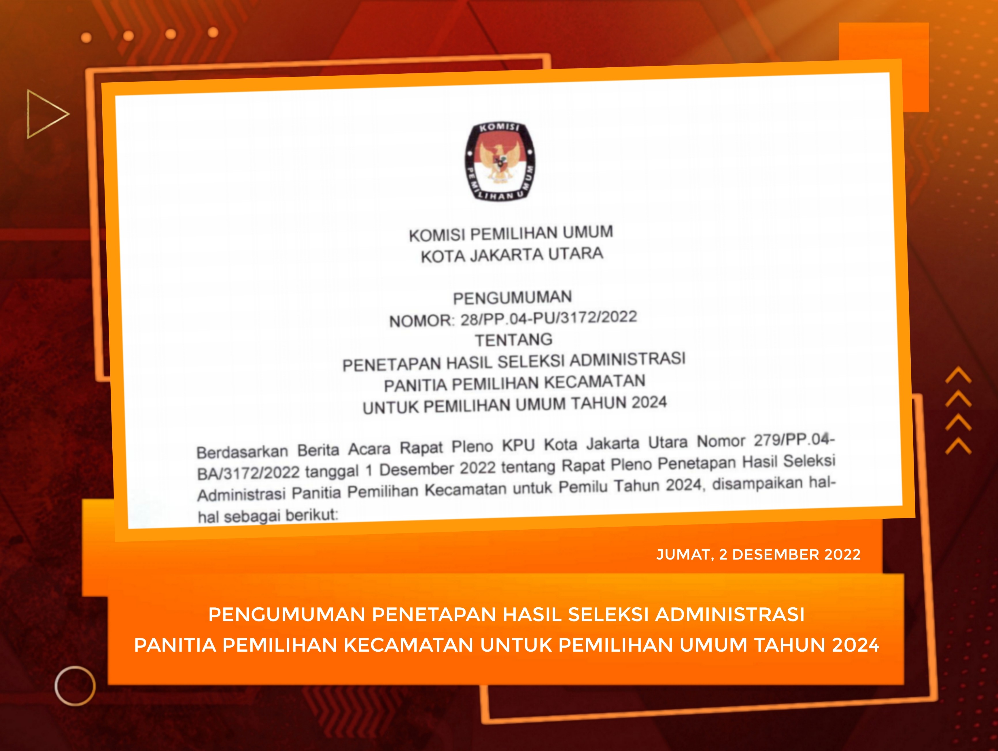 Bertempat di halaman kantor KPU Kota Jakarta Utara, tepat Pukul 08.00 WIB, Selasa, (29/11)