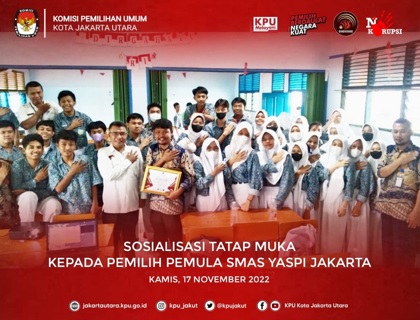 #Temanpemilih Senin (28/11) Komisi Pemilihan Umum Kota Jakarta Utara melaksanakan Kegiatan Apel Pagi rutin di halaman kantor KPU Kota Jakarta Utara. Bertindak sebagai Pimpinan apel, Anggota KPU Kota Jakarta Utara, Bapak Ibnu Affan.
