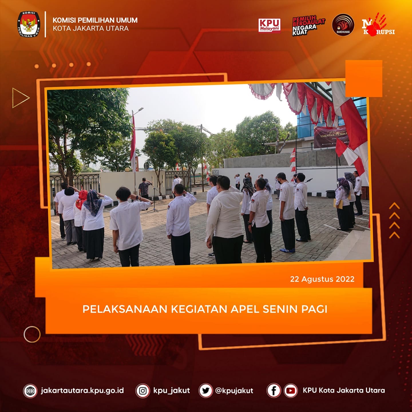 #Temanpemilih Senin (14/11) Komisi Pemilihan Umum Kota Jakarta Utara melaksanakan Kegiatan Apel Pagi rutin di halaman kantor KPU Kota Jakarta Utara. Bertindak sebagai Pimpinan apel, Sekretaris KPU Kota Jakarta Utara, Ibu Frieda Febriyanti.