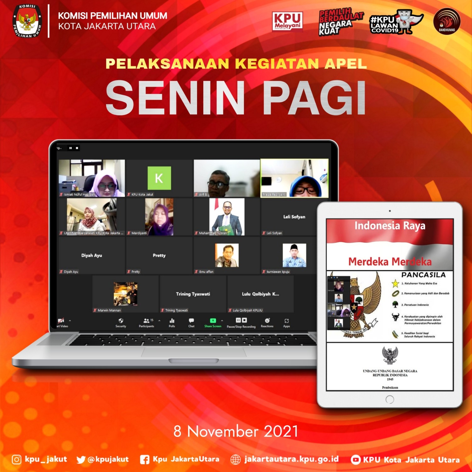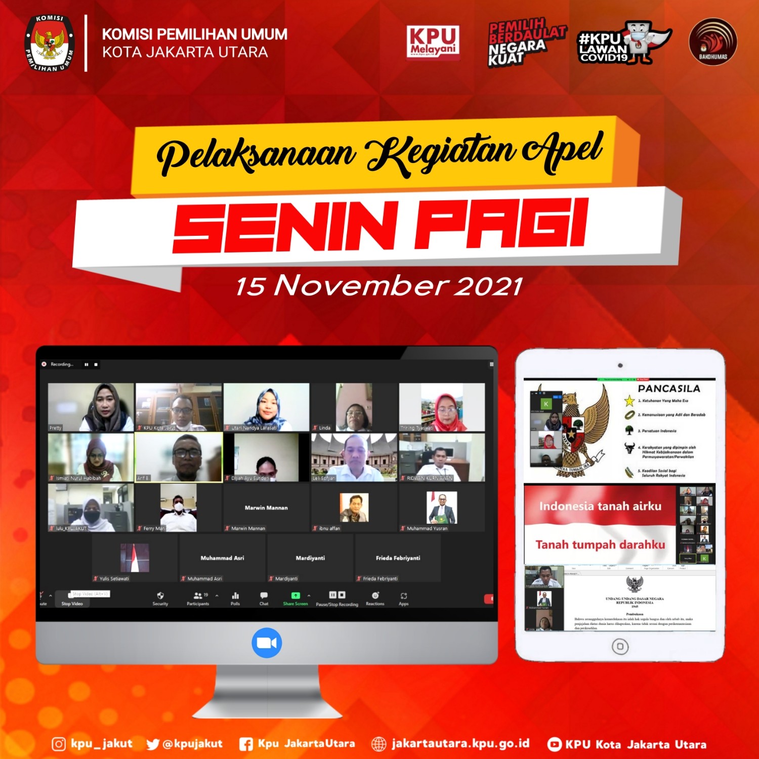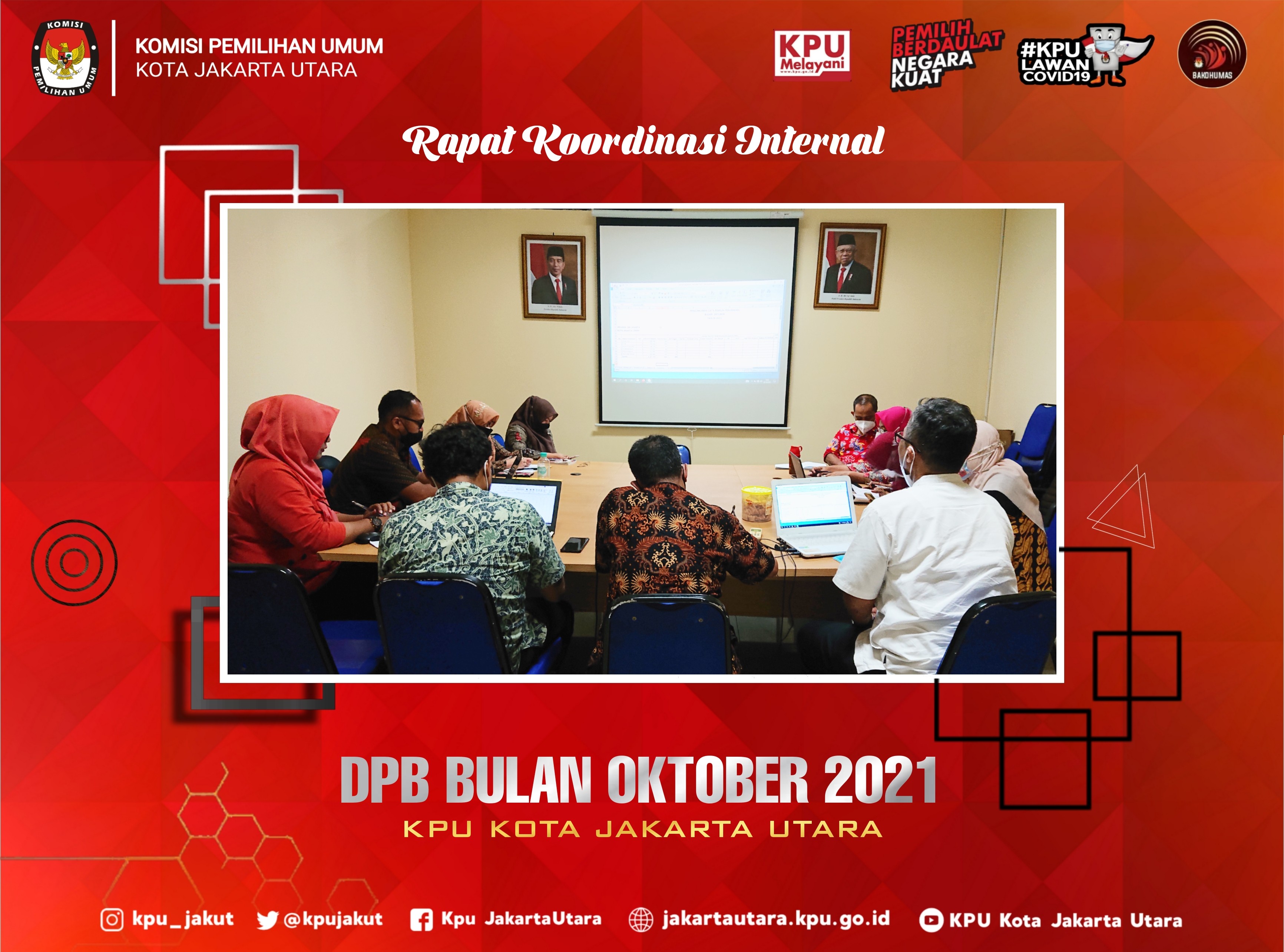 KPU Kota Jakarta Utara melaksanakan Rapat Koordinasi Daftar Pemilih Berkelanjutan Tahun 2021 periode Oktober dengan Hasil Rekapitulasi Daftar Pemilih Berkelanjutan dengan Jumlah sebanyak 1.269.284 (satu juta dua ratus enam puluh sembilan ribu dua ratus delapan puluh empat) pemilih dengan rincian pemilih laki – laki berjumlah 633.848 (enam ratus tiga puluh tiga ribu delapan ratus empat puluh delapan) pemilih dan pemilih perempuan berjumlah 635.436 (enam ratus tiga puluh lima ribu empat ratus tiga puluh enam) pemilih tersebar di 6 (enam) Kecamatan dengan menggunakan Zoom Meeting Conference yang dihadiri Anggota KPU Kota Jakarta Utara, Sekretaris KPU Kota Jakarta Utara, Kepala Sub Bagian Program Dan Data, Pejabat Fungsional serta Staf ASN dan Tenaga Pendukung Sub Bagian Program Dan Data Kpu Kota Jakarta Utara berjalan dengan lancar.