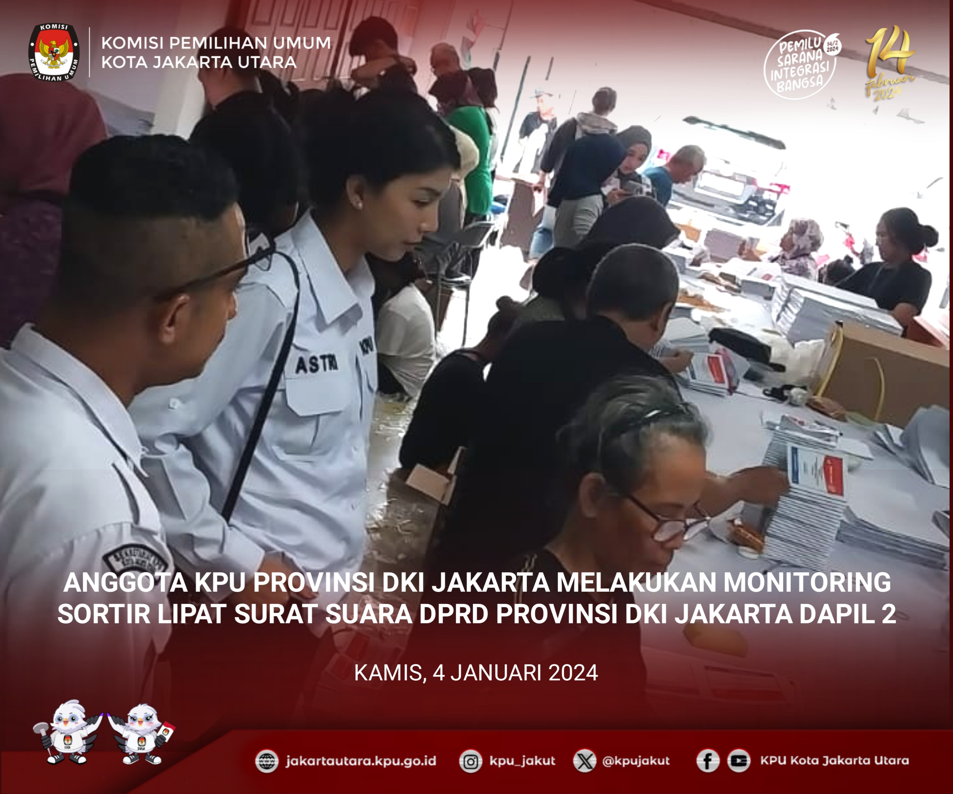 #TemanPemilih KPU Kota Jakarta Utara menghadiri Acara Rapat Koordinasi Persiapan Posko Pemilu Kota Administrasi Jakarta Utara Tahun 2024, pada hari Kamis, 4 Januari 2024 pukul 13.00 WIB s.d selesai.