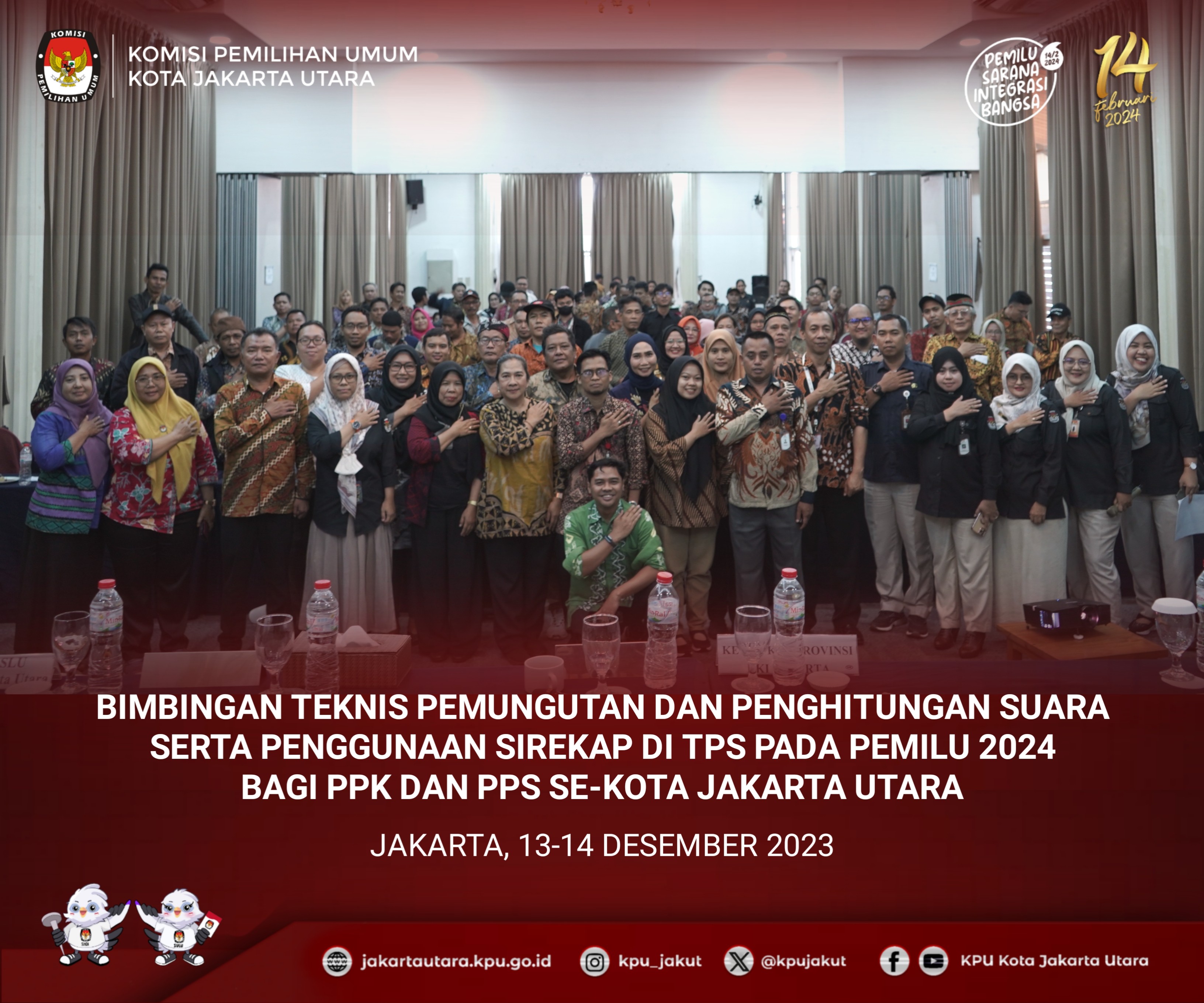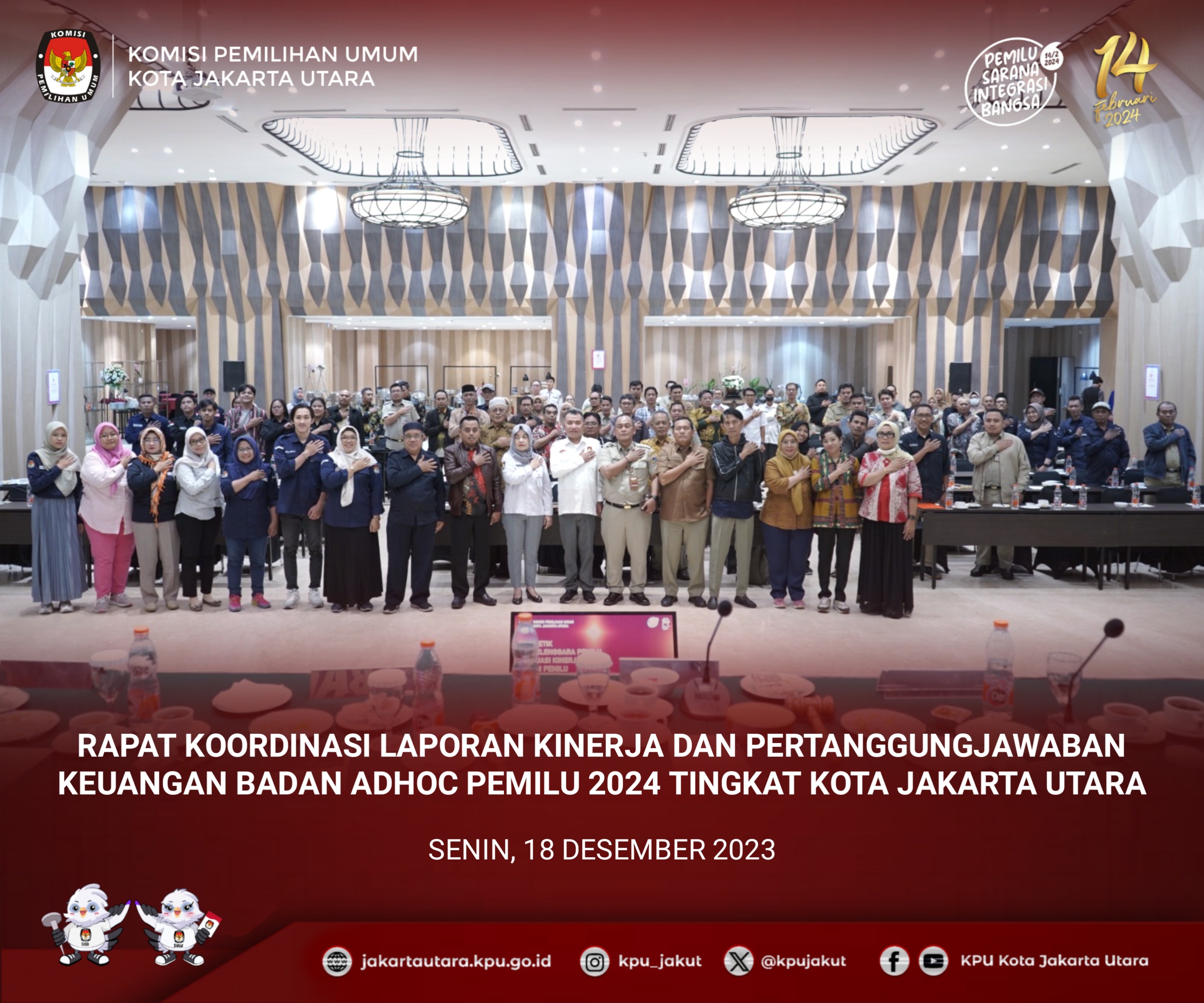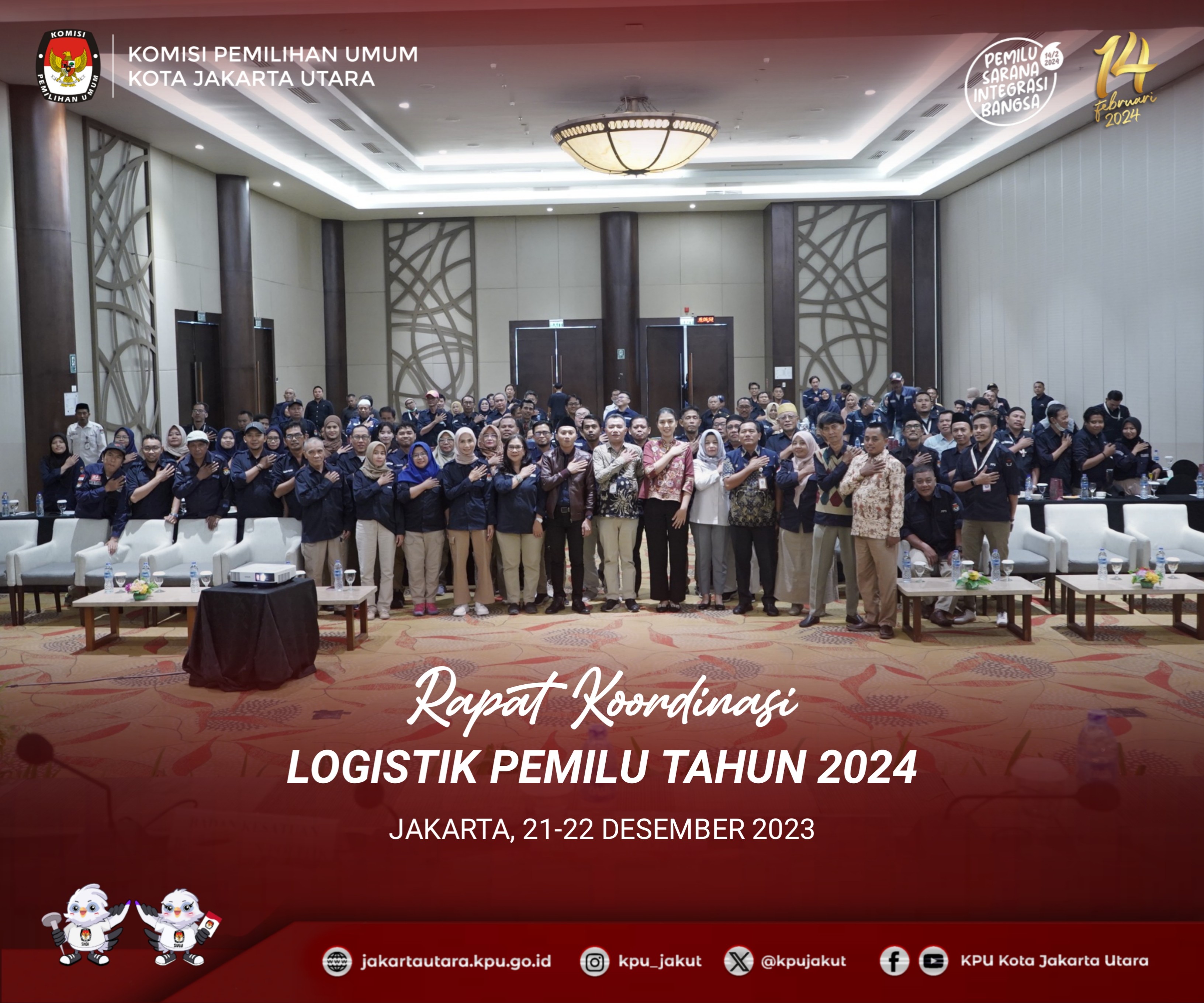 #TemanPemilih KPU Kota Jakarta Utara melakukan Rapat Koordinasi Logistik Pemilu Tahun 2024, pada tanggal 21-22 Desember 2023, yang bertempat di Hotel Discovery Ancol. Acara di hadiri oleh Anggota KPU Provinsi DKI Jakarta Ibu Astri Megatari, Ketua dan Anggota KPU Kota Jakarta Utara, Kasuban Kesbangpol Kota Adm. Jakarta Utara Bpk. Yunus Burhan, Sekretaris dan Kasubbag KPU Kota Jakarta Utara, Ketua dan Anggota PPK se-Kota Jakarta Utara, dan Ketua dan Anggota PPS se-Kota Jakarta Utara. Acara di buka oleh Ketua KPU Kota Jakarta Utara, dalam sambutannya beliau menyampaikan bahwa, "acara kita sedang running pelaksanaan Pemilu sudah semakin dekat sehingga padat nya acara, jangan sampai kita kewalahan harus tetap semangat, rekap KPPS yang sedang berjalan dan logistik yang terus berjalanan harus tetap di kerjakan dengan baik karena kita semua mempunyai tanggung jawab dalam menyukseskan Pemilu Tahun 2024." Ucapnya. Ibu Astri Megatari selaku Anggota KPU Provinsi DKI Jakarta menyampaikan bahwa "Pemilu hanya tinggal hitungan hari lagi, logistik terus berjalan, dan sebentar lagi kita melaksanakan sortir lipat, dan teman-teman harus memperhatikan karena ada SOP yang harus di cermati, utamanya PPK dan PPS karena temen temen lah yang menjadi garda terdepan, maka perlu adanya koordinasi yang berkelanjutan dari Wilayah ke Kota ke Provinsi dan seterusnya, sehingga kita dapat menjaga informasi dengan baik dan meminimalisir kesalah pahaman. #KPUMelayani #PemiluSerentak2024